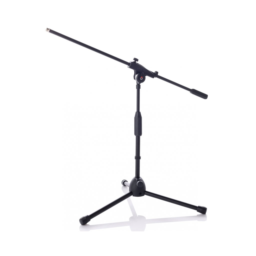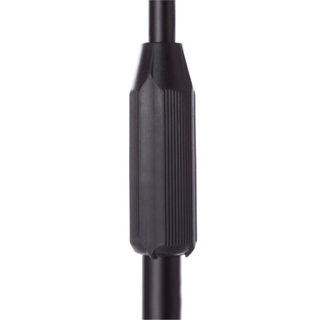 Nastaviteľný otočný mikrofónový stojan s trojnohým podstavcom so závitovým zámkom a nastaviteľnými káblovými svorkami.