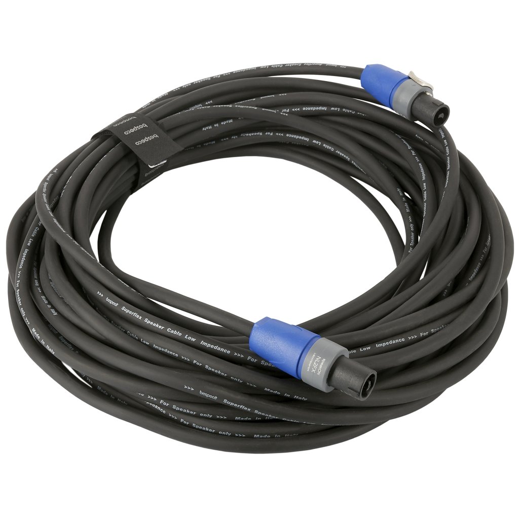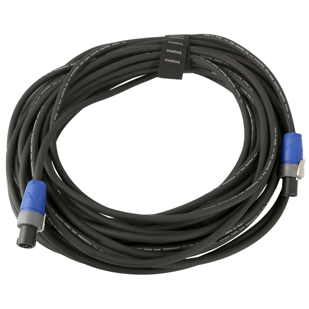 Tento dvojpólový reproduktorový kábel zo série Bespeco Professional je vybavený vodičom z 99 % bezkyslíkatej medi (OFC) a vnútorným polovodivým PVC plášťom, ktorý nevytvára šum. Ku kvalite zvuku prispieva aj špirálové tienenie na viac ako 94 % vodičov alebo špičkové konektory Speakon od renomovanej značky Neutrik. Samozrejmosťou je aj odolný a zároveň pružný plášť z PVC a vulkanizovaného silikónu.