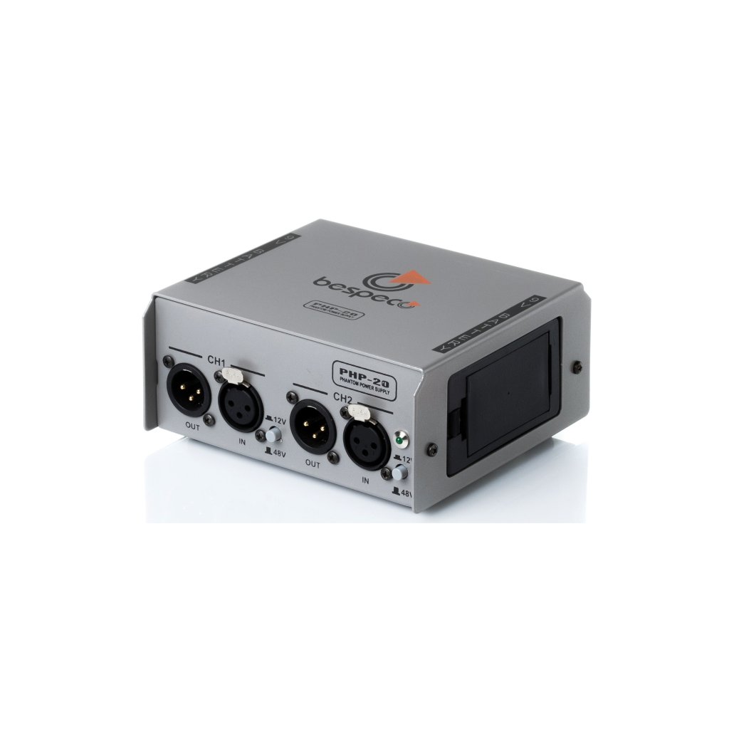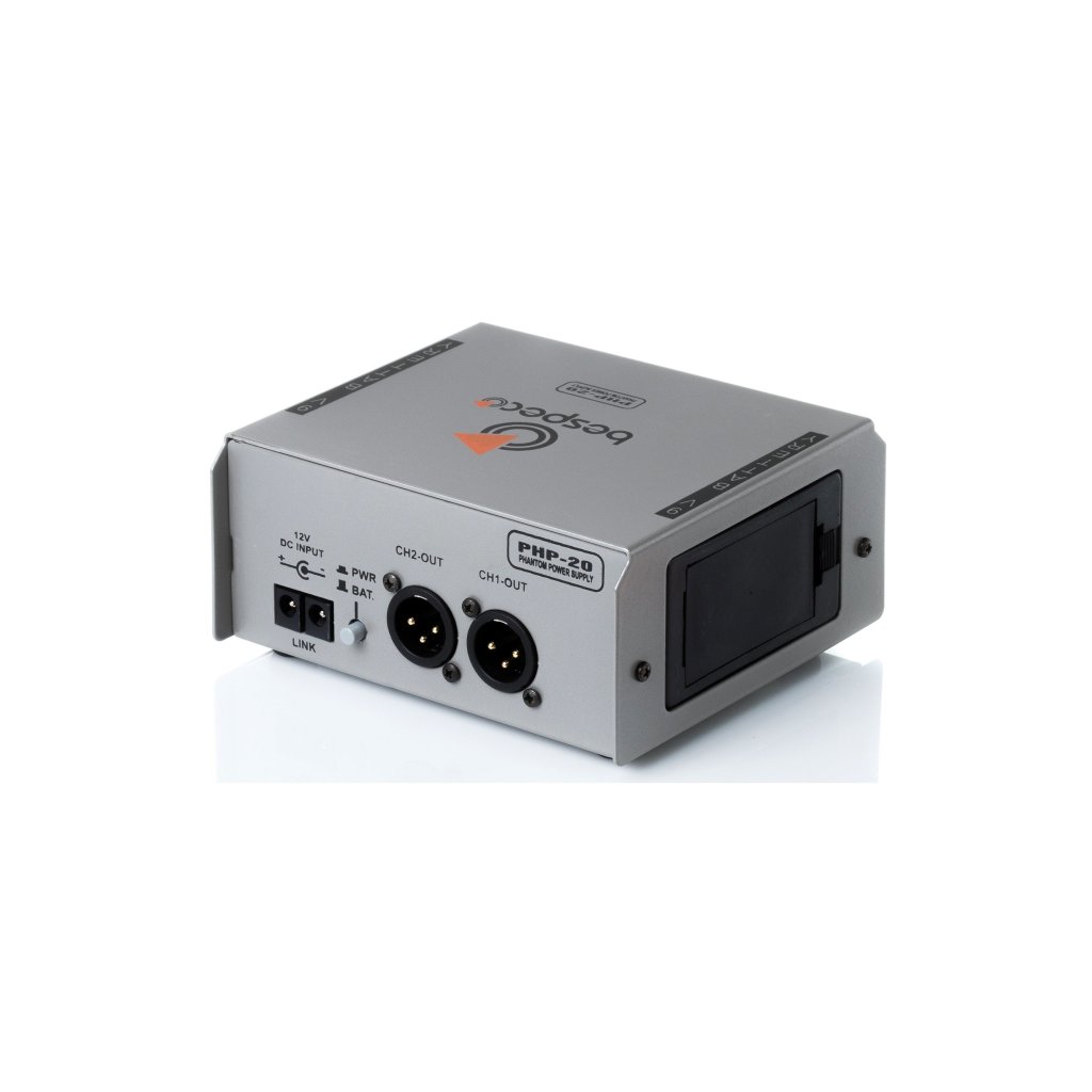 Bespeco PHP20 je dvojkanálový fantómový napájací zdroj pre kondenzátorové mikrofóny alebo iné nástroje. Môže byť napájaný dvoma 9 V batériami alebo 12 V adaptérom (nie je súčasťou balenia).