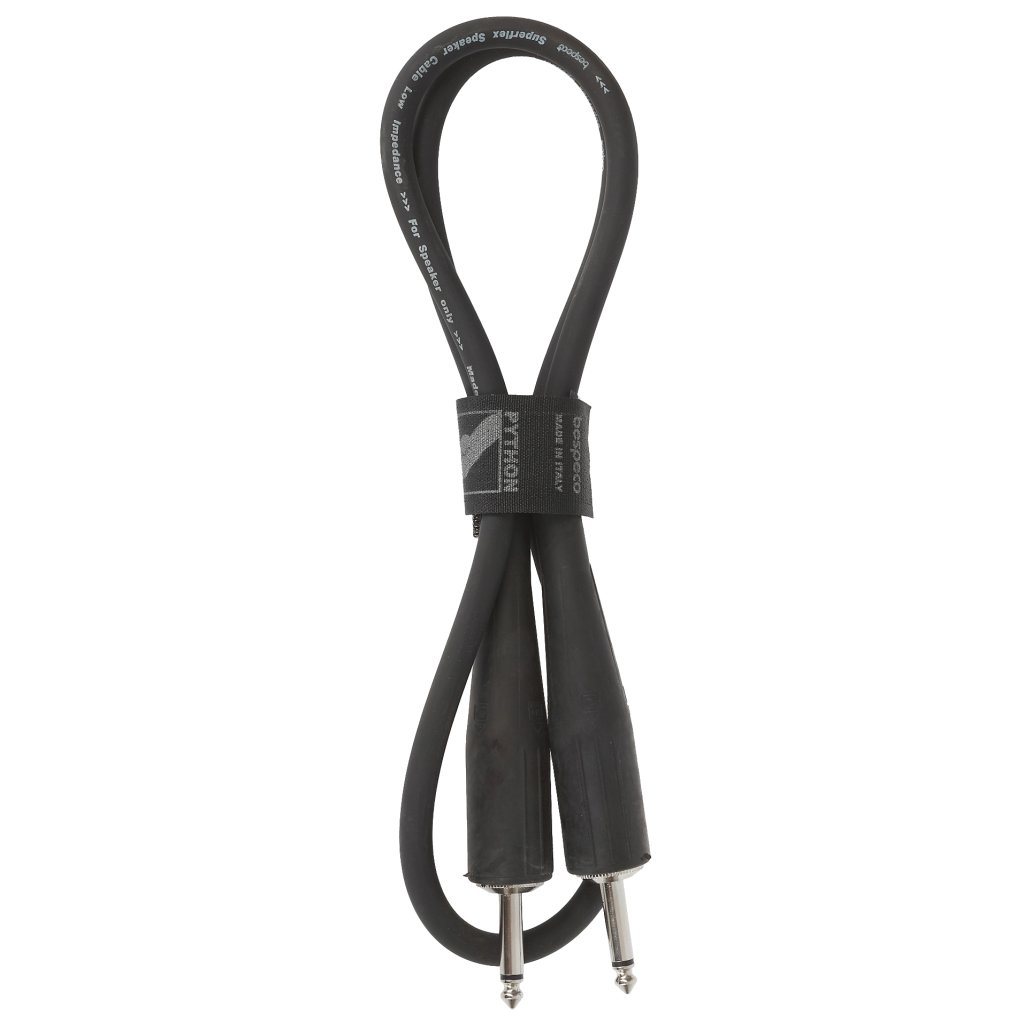 Reproduktorový kábel Bespeco s masívnymi jumbo konektormi. Séria Python je vyrobená z 98 % bezkyslíkatej medi (OFC) a vďaka polovodivému tieneniu z PVC nevytvára nežiaduci šum ani brum. Vonkajšie opletenie je vyrobené z PVC a vulkanizovaného silikónu, čo káblu dodáva vysokú flexibilitu a odolnosť.