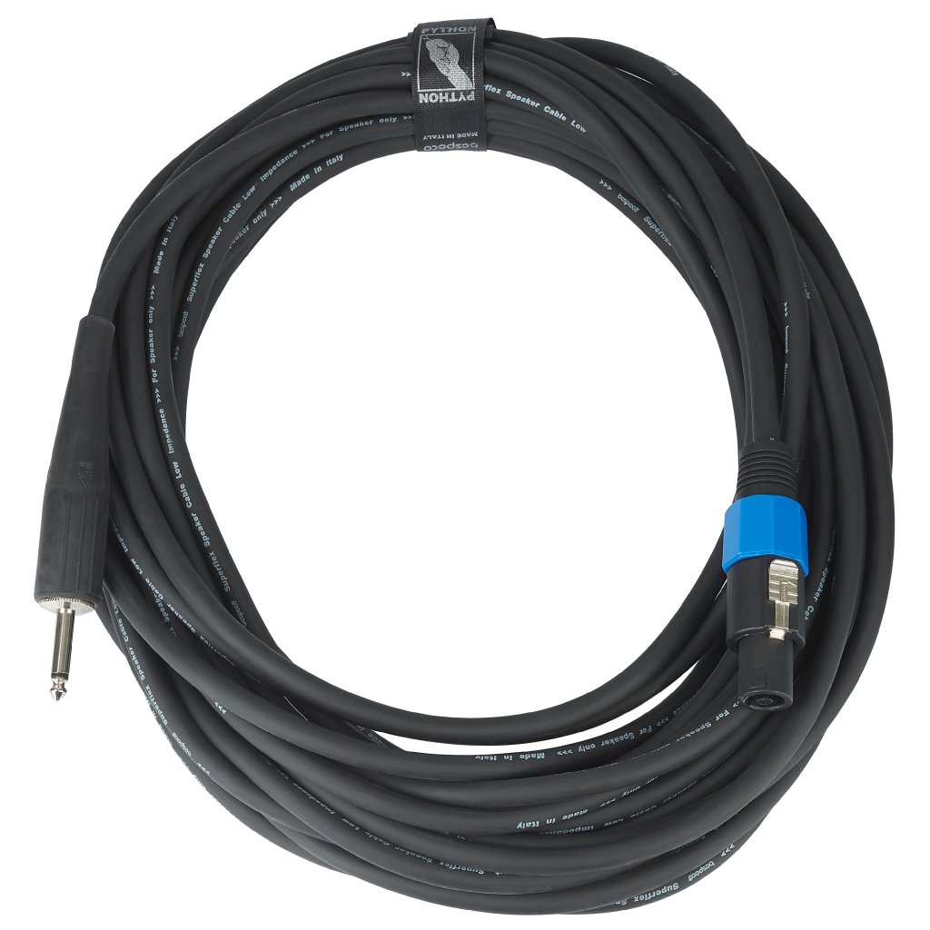 Napájací kábel reproduktorov série Python. Kábel sa skladá z gumového konektora jumbo jack, konektora reproduktora a mimoriadne bezhlučného kábla. Séria Python je vyrobená z 98 % bezkyslíkatej medi (OFC) a vďaka polovodivému tieneniu z PVC nevytvára nežiaduci šum ani brum. Vonkajšie opletenie je vyrobené z PVC a vulkanizovaného silikónu, čo dáva káblu vysokú flexibilitu a odolnosť.