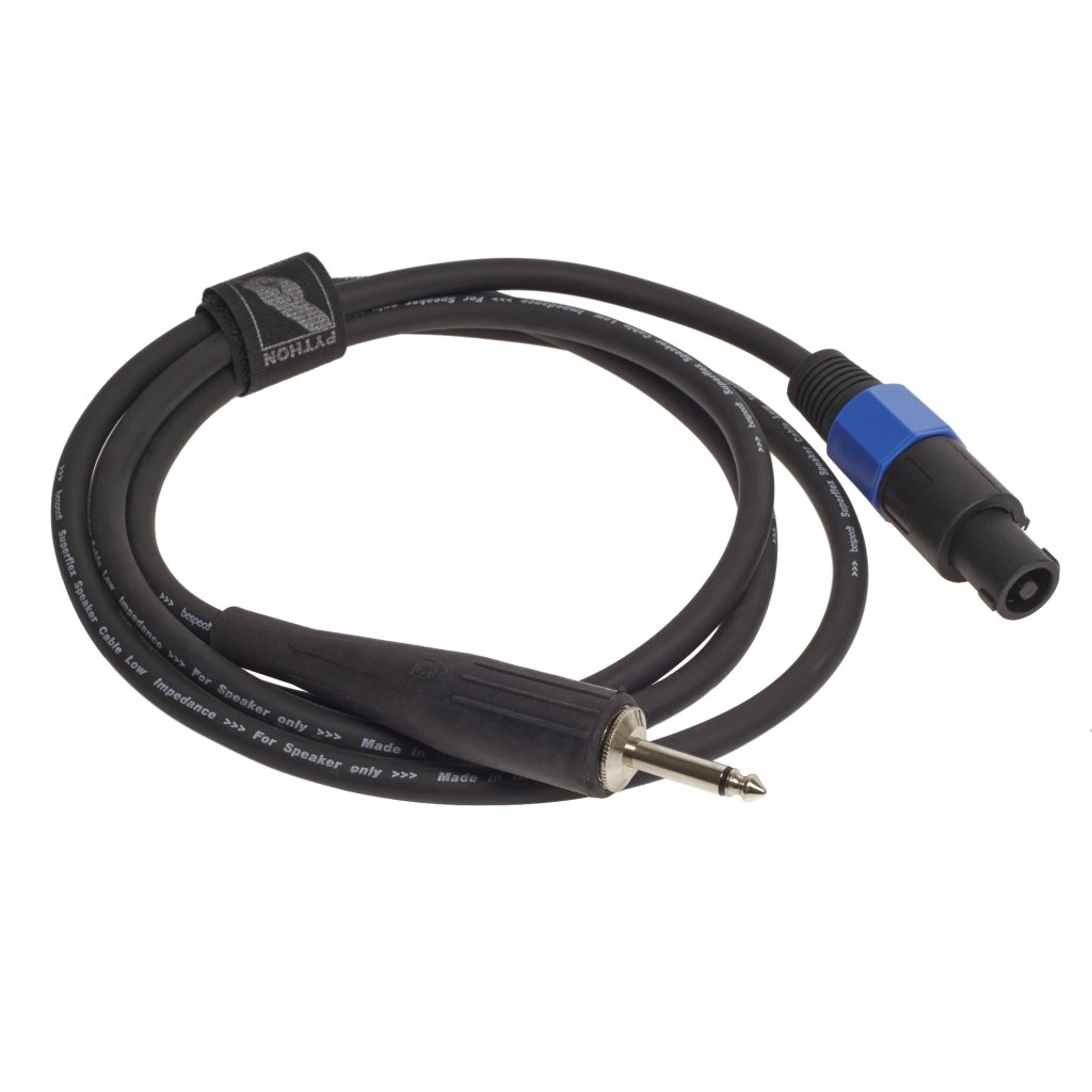 Napájací kábel reproduktorov série Python. Kábel sa skladá z gumového konektora jumbo jack, konektora reproduktora a mimoriadne bezhlučného kábla. Séria Python je vyrobená z 98 % bezkyslíkatej medi (OFC) a vďaka polovodivému tieneniu z PVC nevytvára nežiaduci šum ani brum. Vonkajšie opletenie je vyrobené z PVC a vulkanizovaného silikónu, čo dáva káblu vysokú flexibilitu a odolnosť.