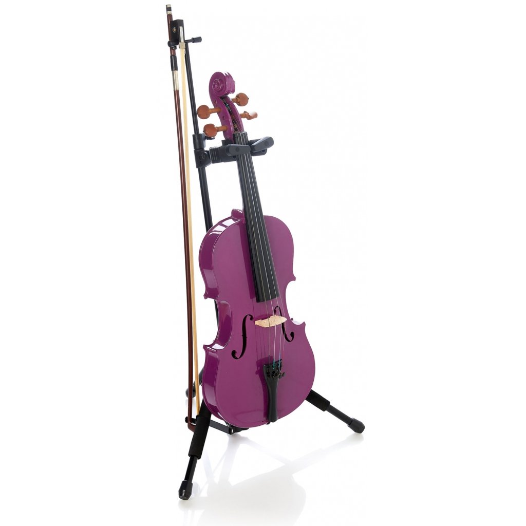 Profesionálny stojan na husle, vyrobený z pevnej, ale ľahkej ocele. Má samosvorný systém, ktorý zabraňuje vypadnutiu nástroja, a vyvýšený držiak sláčika. Výška je nastaviteľná v rozmedzí 34-56 cm (+30 cm držiak luku). Samozrejme, stabilná základňa alebo polstrované kontaktné plochy zabraňujú poškriabaniu nástroja.