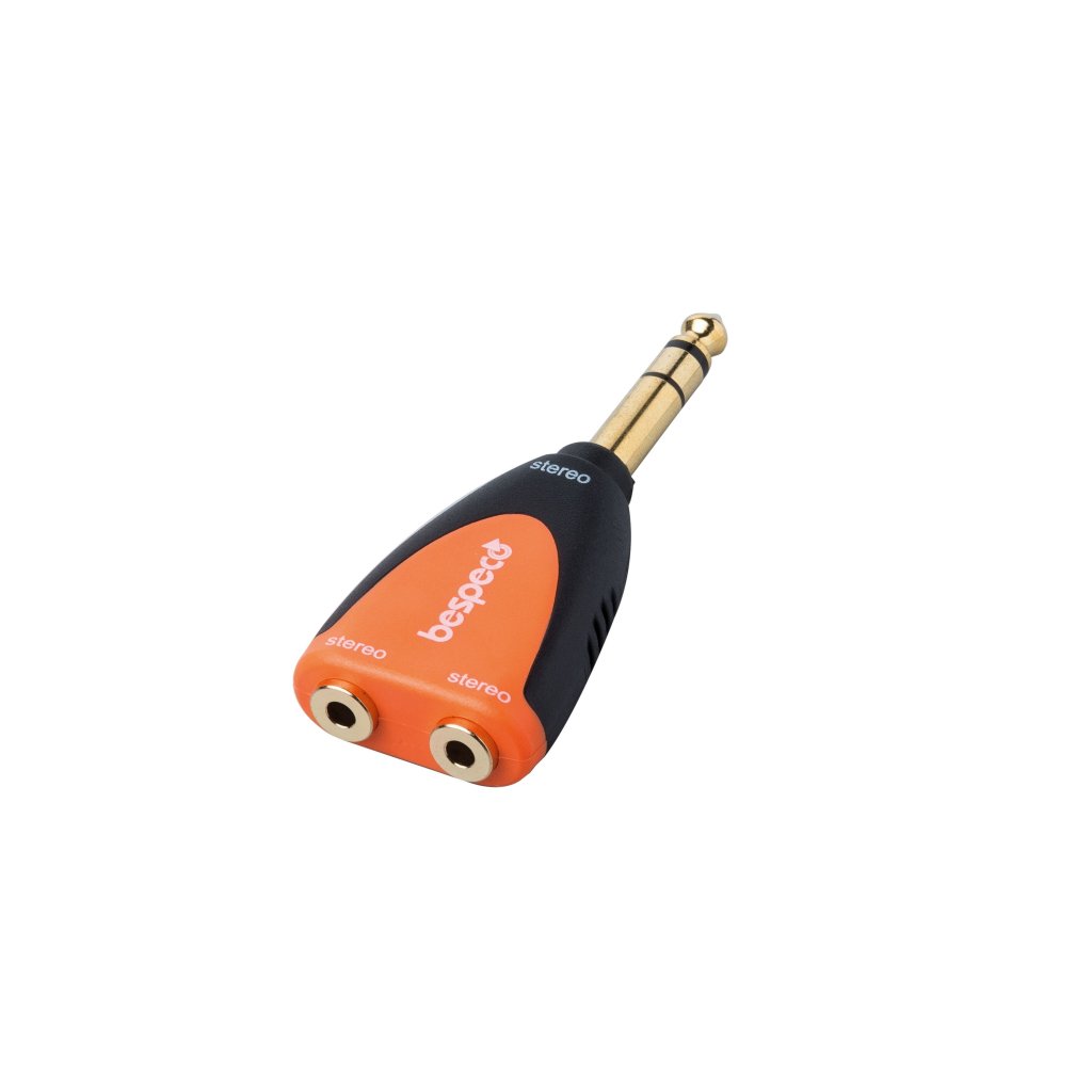 Samec 6,3 mm stereo jack - 2x samica 3,5 mm stereo jack. Redukcie a prepojky od talianskej spoločnosti Bespeco vám zabezpečia dokonalý prenos signálu - či už ide o audio, video alebo dáta. Starostlivo sa dbá na presné výrobné postupy, aby konektory mali dokonalé spoje a nevytvárali nežiaduci šum. Pre ešte lepšiu vodivosť sú konektory pozlátené.