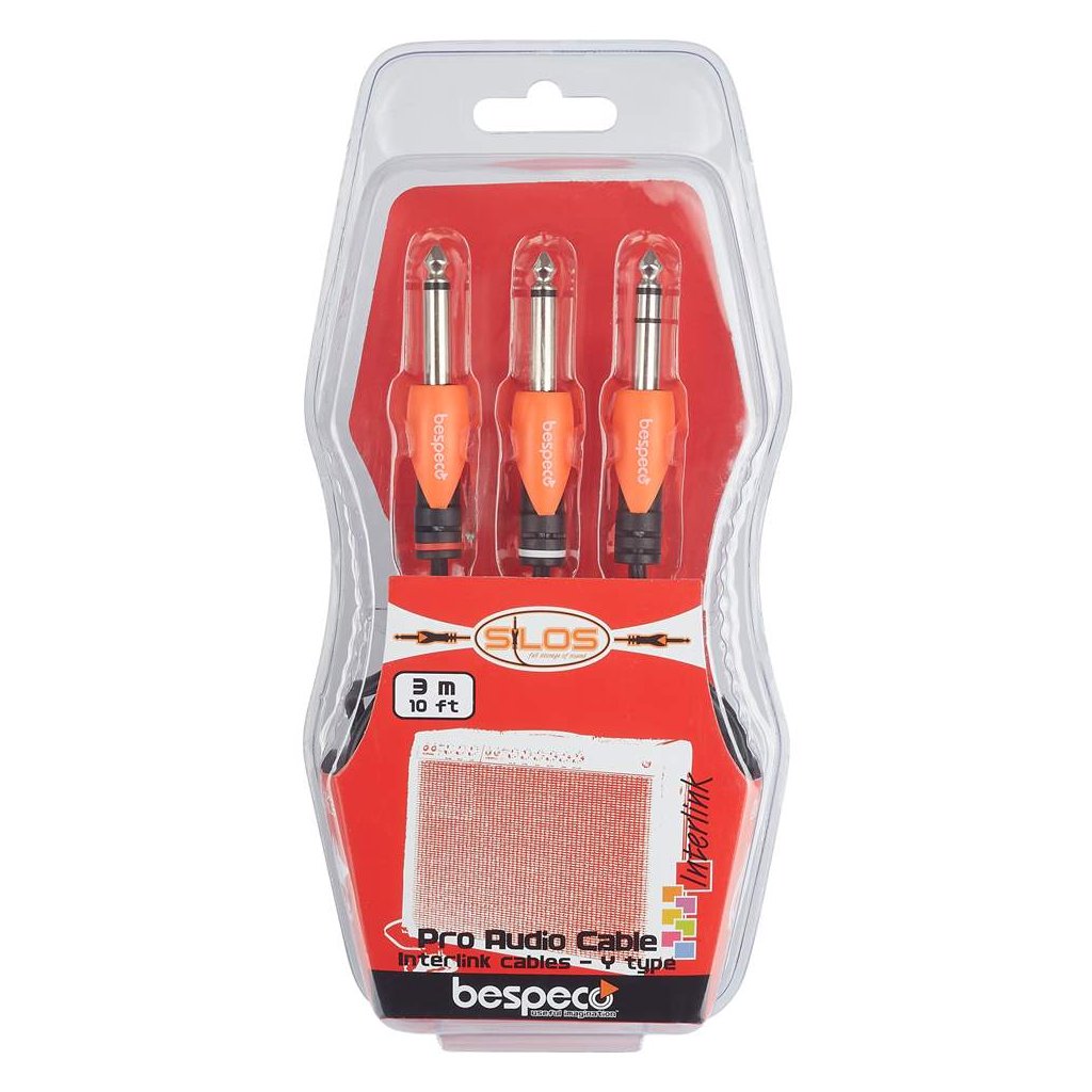 Pripojovací kábel s profilovaným 6,3 mm stereo jackom, dva profilované 6,3 mm mono jack konektory. Tento kábel série Bespeco Silos je vybavený vodičom z 98 % bezkyslíkatej medi (OFC) a vnútorným polovodivým PVC plášťom, ktorý nevytvára šum. Ku kvalite zvuku prispieva aj špirálové tienenie na viac ako 92 % vodičov alebo tvarované plastové konektory. PVC a vulkanizovaný silikónový plášť je samozrejme odolný a pružný. Káble tejto série sú vhodné pre širokú škálu aplikácií a prekvapujú vynikajúcou kvalitou a veľmi priaznivou cenou.