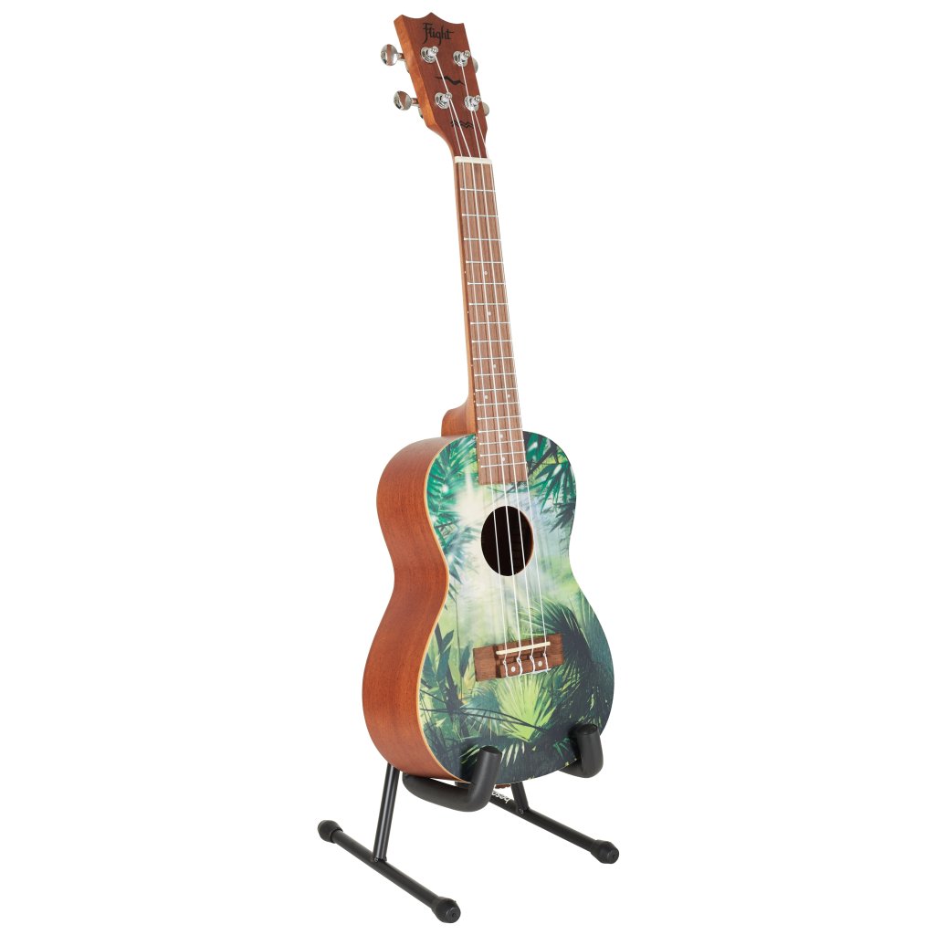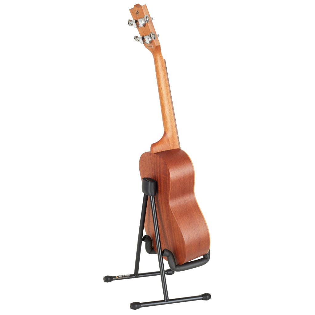 Univerzálny stojan typu A pre ukulele je vyrobený z pevného kovu pokrytého mäkkou penovou gumou, ktorá zabraňuje poškriabaniu nástroja. S výškou 40 cm a rozpätím 28 cm je vhodný pre všetky sopránové, koncertné a tenorové ukulele.