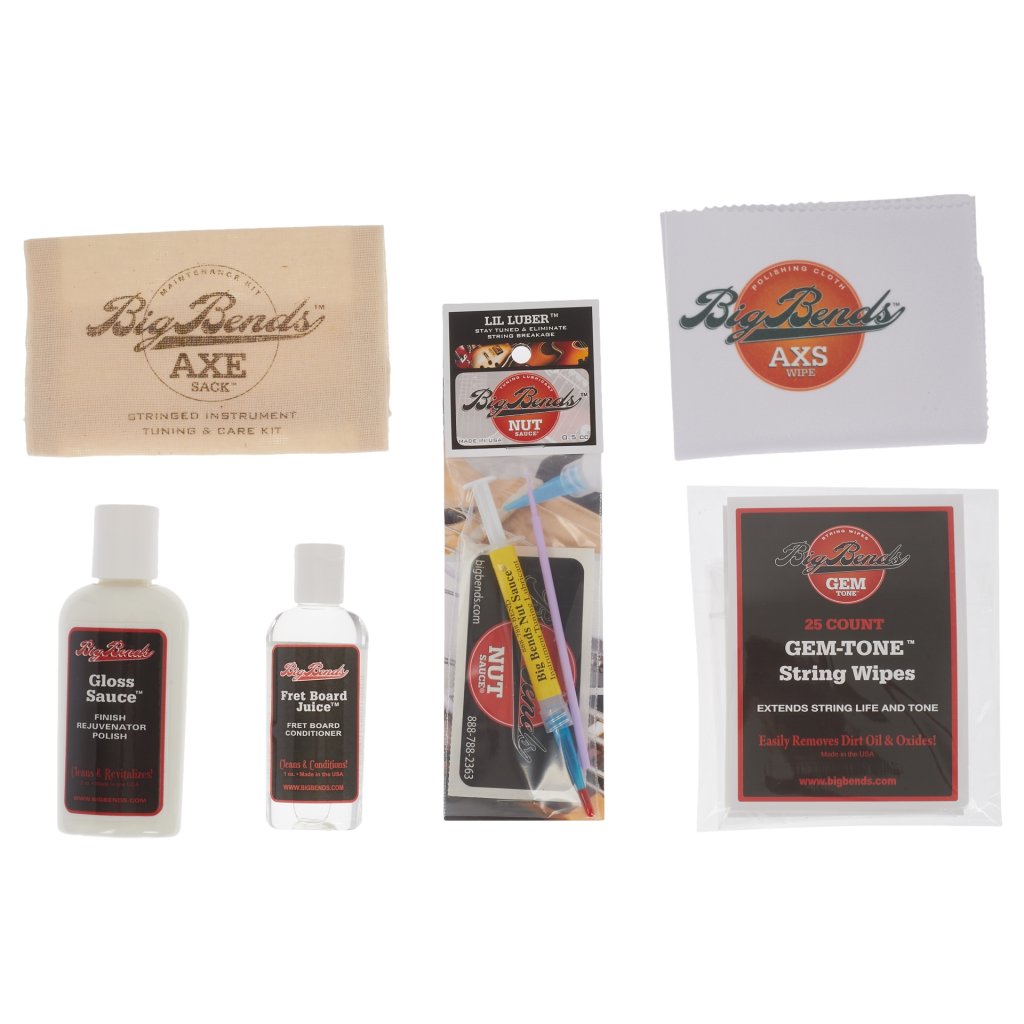 Súprava Big Bends Complete Maintenance Kit obsahuje všetko, čo potrebujete na udržanie vášho nástroja v perfektnom vizuálnom a funkčnom stave. Súčasťou je 25 nových obrúskov na struny Gem-Tone vyrobených z najmodernejších materiálov na jednoduché čistenie strún, univerzálna handrička z mikrovlákna, kondicionér na hmatník, aplikátor kondicionéru na pražce, leštenka na lak, nálepka a praktické puzdro. S touto súpravou udržíte svoje nástroje vždy perfektne naladené, predídete praskaniu strún, predĺžite ich životnosť a obnovíte pôvodný lesk laku a stav hmatníka.