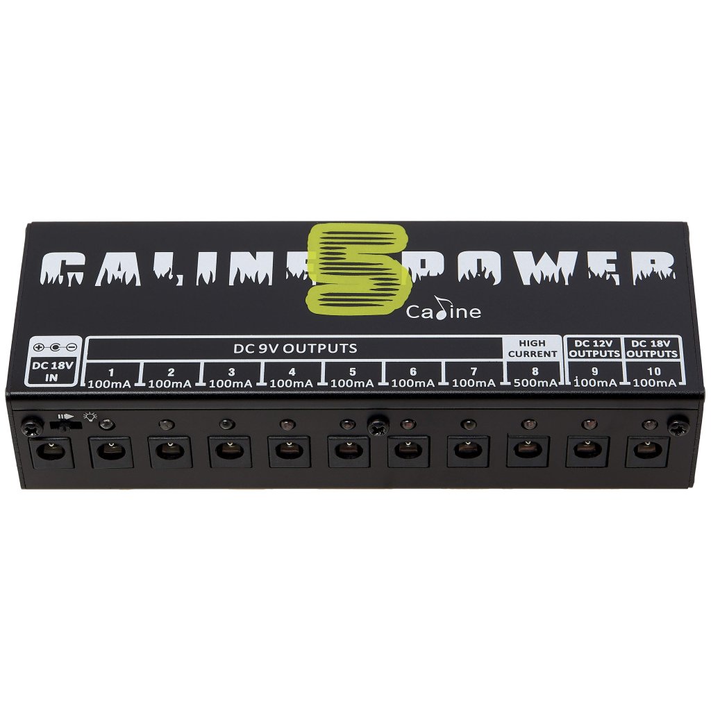 Multiadaptéry CP-05 od čínskej značky Caline ponúka v odolnom hliníkovej šasi celkom desať výstupov k napájaniu vašich gitarových efektov (7x 100 mA / 9V, 1x 500 mA / 9V, 1x 100mA / 12V, 1x 100mA / 18V) a ochranu proti prepätiu.