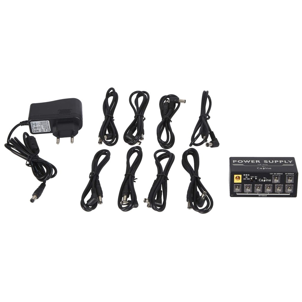CP-204 je kompaktný multiadaptéry čínske značky Caline, ktorý ponúka celkom osem výstupov k napájaniu vašich gitarových efektov (6x 100 mA / 9V DC, 1x 500 mA / 9V DC a výstup s přepínatelným výstupným napätím 1x 300 mA / 9-12V DC).