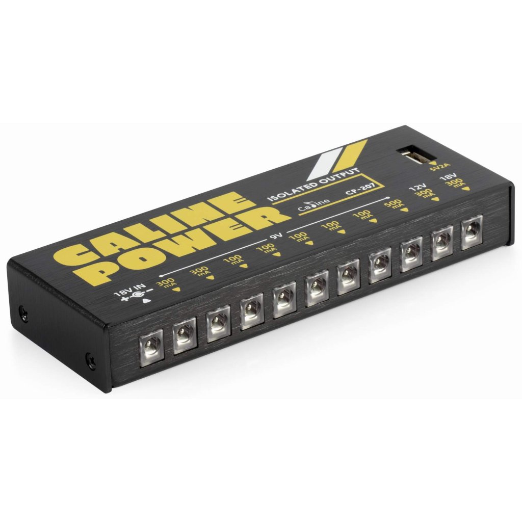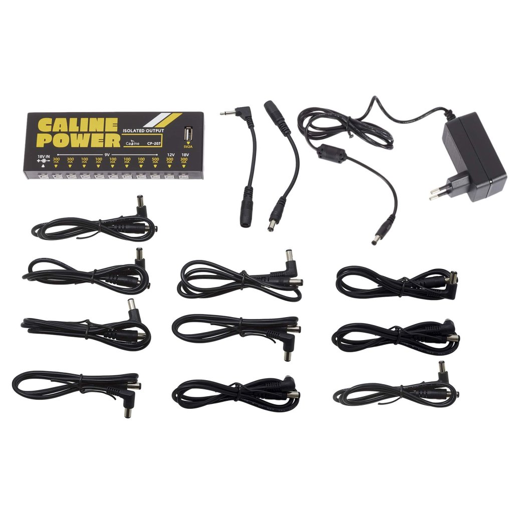 Caline CP-207 je multiadaptéry s desiatimi výstupmi na napájanie gitarových efektov (5x 9V 100 mA, 2x 9V 300mA, 1x 9V 500mA, 1x 12V 300mA, 1x 18V 300mA) s ochranou proti prepätiu a USB 5V 2A vstupom pre napájanie telefónu a ďalších zariadení . Čínska značka Caline ponúka cenovo dostupné produkty pre muzikantov s priaznivým pomerom ceny a výkonu. Jej výrobky tak predstavujú skvelú voľbu pre začínajúcich gitaristov a hráča s obmedzeným rozpočtom, ktorí však požadujú kvalitný zvuk a spracovanie.