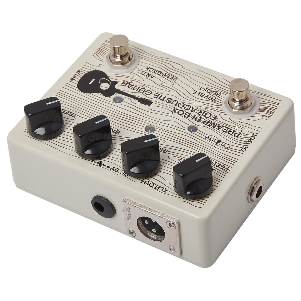 Akustický predzosilňovač a DI box CP-67 čínske značky Caline poteší všetkých hráčov na elektroakustické gitary, ktorí sa nehodlajú zmieriť so stratou dynamiky a prirodzeného akustické zvuku pri názvuceny. Ponúka možnosti úprav v podobe dvojpásmového ekvalizéra (basy a výšky), ovládače Input určujúceho silu vstupného signálu a dve samostatne footswitchom spínateľné funkcie - Anti Feedback pre potlačenie efektu spätnej väzby, bežného sprievodného javu pri zvučanie lubových nástrojov a Treble Boost, kedy v prípade potreby zvýrazníte vyššie frekvencie a dodáte gitarovému tónu väčší jas. Okrem štandardného mono výstupe je k dispozícii samozrejme aj symetrický XLR DI výstup, ktorým pošlite signál priamo do mixpultu alebo nahrávacieho zariadenia.