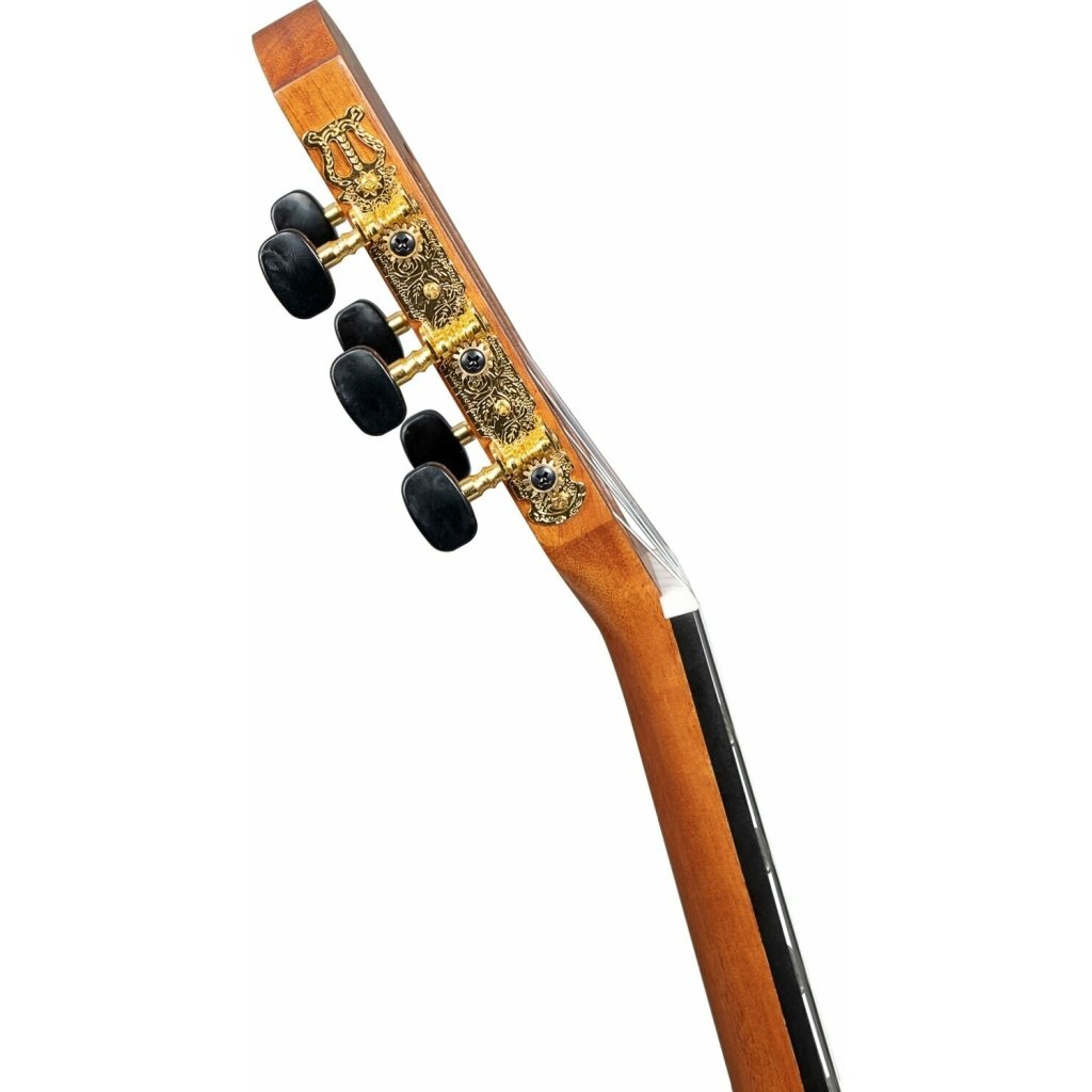 Dreviny použité v kombinácii poskytujú nielen vynikajúce akustické vlastnosti, ale tiež opticky zažiaria. Precízn ladiaca mechanika zaisťuje vysokú stabilitu ladenia a vďaka otvorenému dizajnu so zlatými detailmi upúta pozornosť. Elegantná dekorácia na rezonančnom otvore navyše dodáva tradičný vzhľad. Rovnako ako všetky modely série CASCHA Stage, aj tento model má zabudovanú výstuhu krku, ktorá vám umožňuje perfektne nastaviť akciu strún.