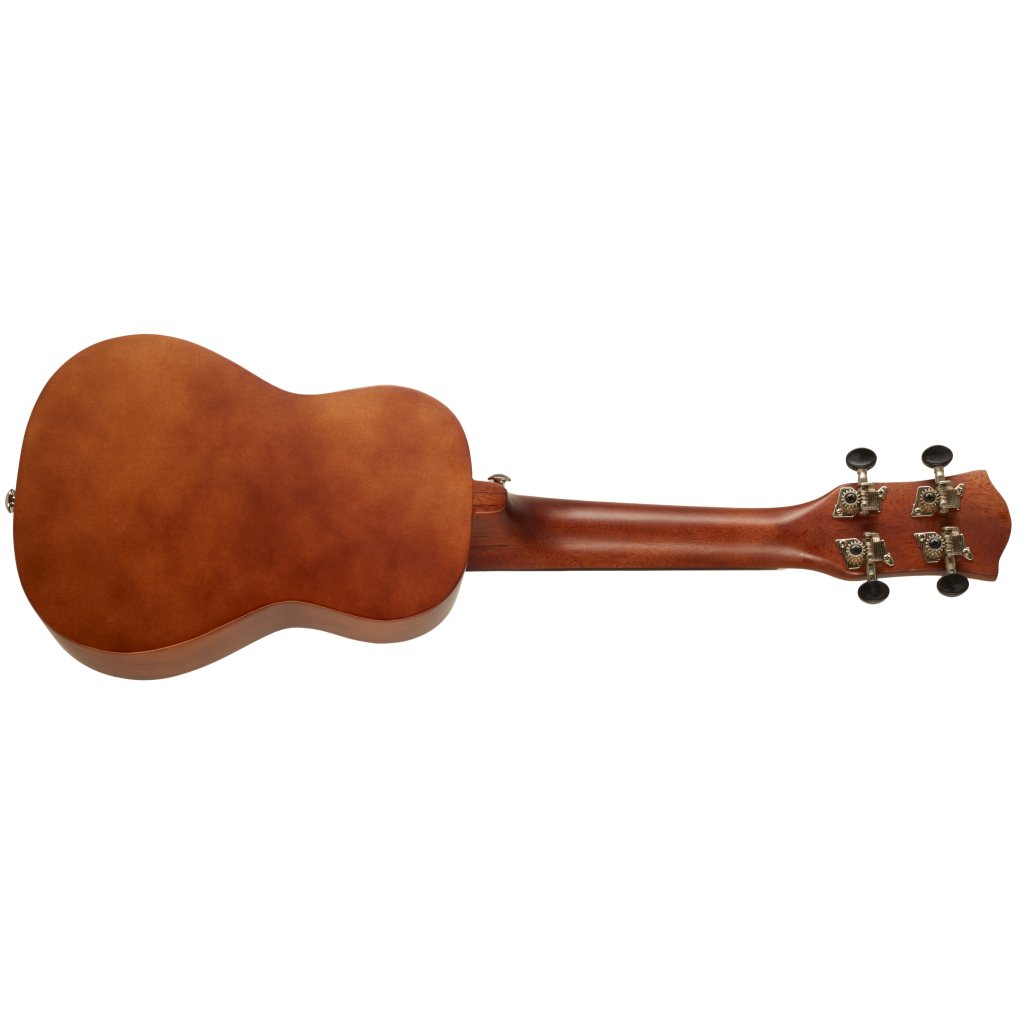 Telo a krk ukulele sú vyrobené z lipového dreva. Hmatník z WPC kompozitu je rozdelený dvanástimi pražcami (rovnaký materiál je použitý aj na hmatník). Struny sú držané v otvorených ladiacich mechanikách gitarového typu. Strohý dizajn gitary umocňuje ozdobná rozeta so vzorom rybej kosti.