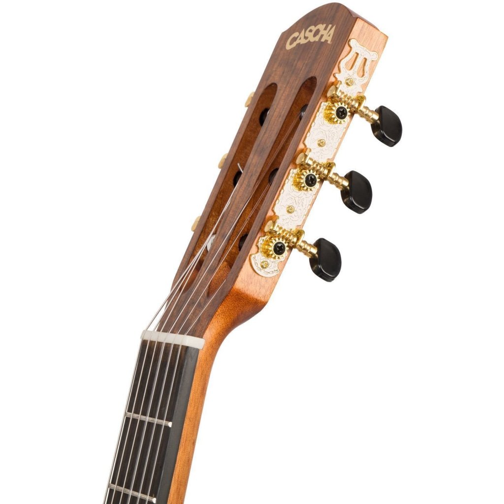 Klasická 4/4 gitara a príslušenstvo. Set obsahuje: 4/4 klasickú gitaru, polstrované puzdro s rukoväťami a ramenným popruhom, 3 trsátka. Vrchná doska gitary je vyrobená zo smrekového laminátu a poskytuje jasný, brilantný zvuk. Zadná časť a luby sú vyrobené z dreva sapele. Gitara disponuje hmatníkom a kobylkou z dreva kabukalli. Osadená je krkom z dreva okoume. Použité materiály zabezpečujú vynikajúci zvuk a dizajn.