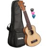 Ukulele je dodáváno v polstrovaném obalu spolu se třemi trsátky.