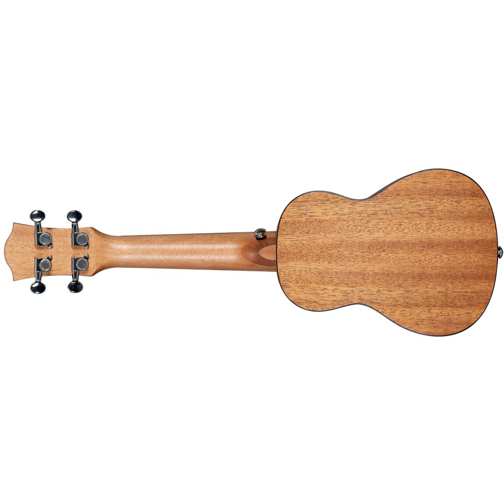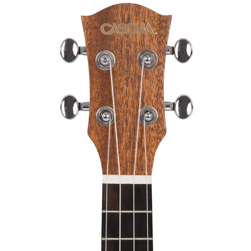 Přední deska sopránového ukulele pro leváky Cascha HH 2148L Soprano Spruce LH z řady Solid Top Series je zhotovena z masivu smrku, zadní deska a luby jsou vyrobeny z laminovaného mahagonu. Struny jsou uchyceny v chromovaných mechanikách kytarového typu a kobylce z palisandru, ze kterého je zhotoven i hmatník ukulele. Pěkné zpracování podtrhuje rozeta a výložka se vzorem rybí kosti a černá oboustranná obvodová lemovka těla.