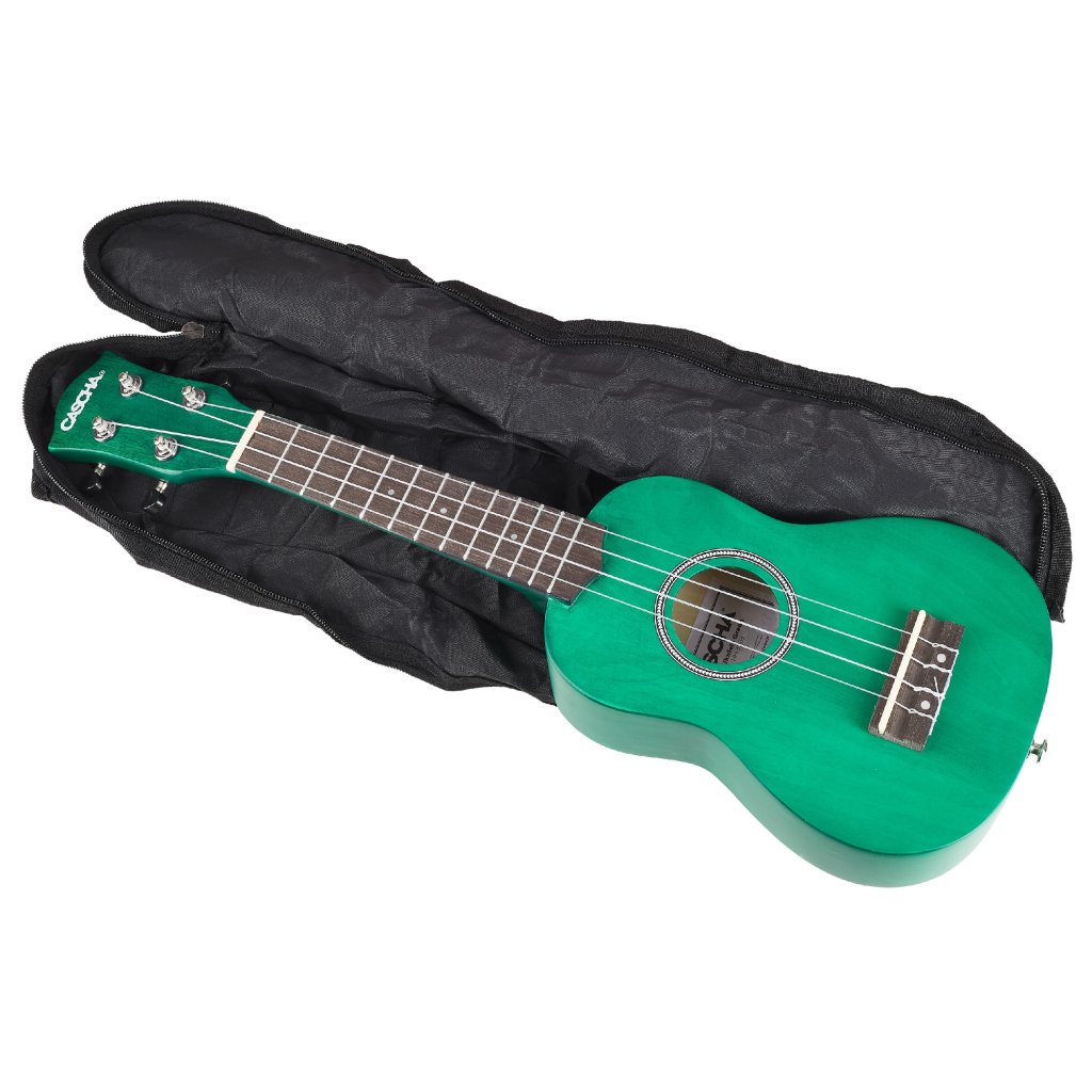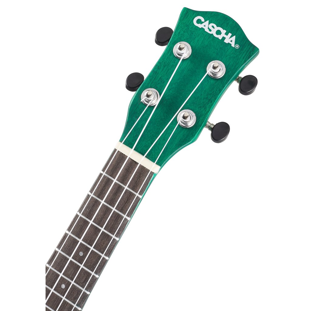 Zelené sopránové ukulele Cascha je cenovo dostupný nástroj vhodný pre deti a úplných začiatočníkov. Spolu s ukulele dostanete praktické puzdro a tri trsátka, takže môžete okamžite vyraziť za zábavou k vode, na skaly, k moru... kdekoľvek to žije.