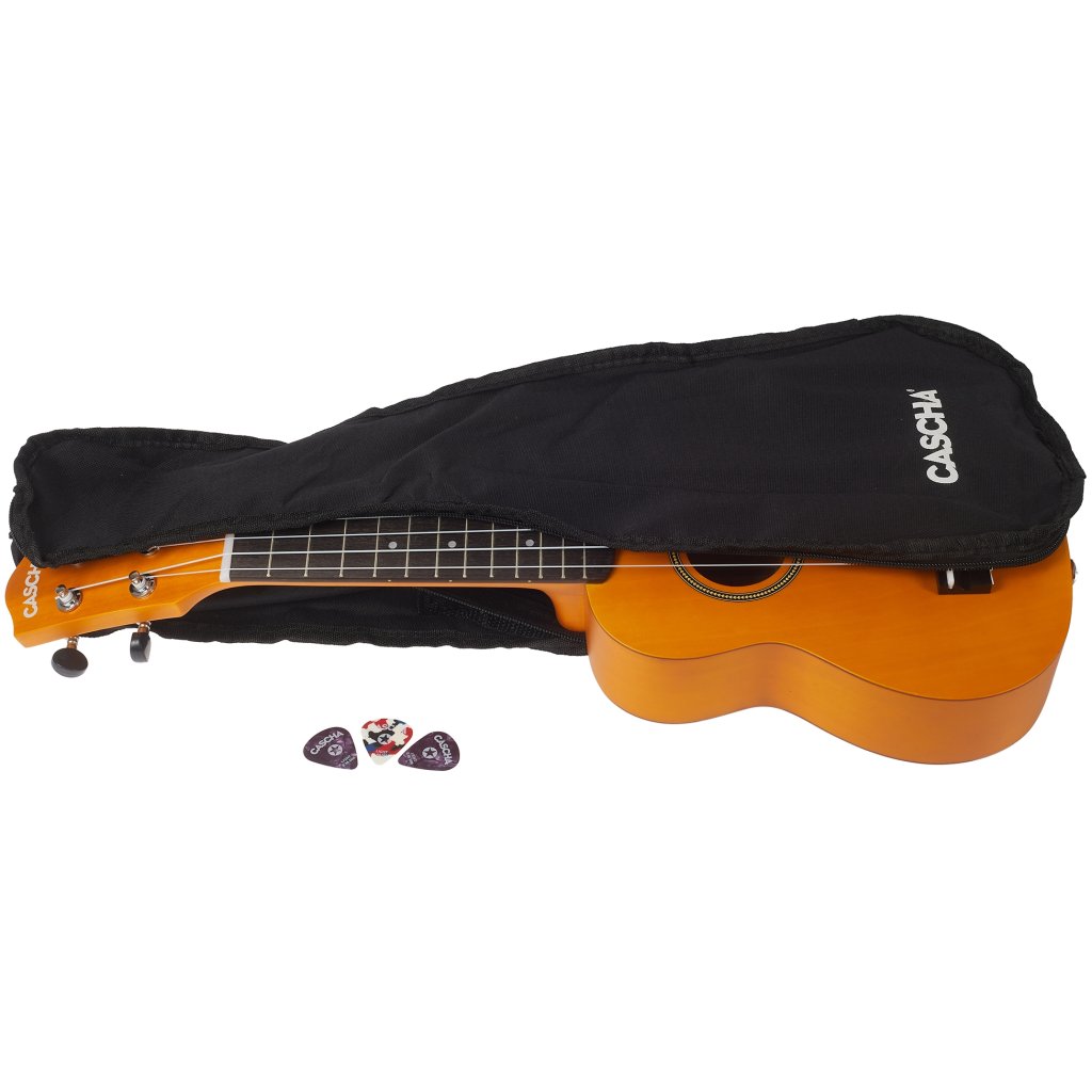 Žlté sopránové ukulele Cascha je cenovo dostupný nástroj vhodný pre deti a úplných začiatočníkov. Spolu s ukulele dostanete praktické puzdro a tri trsátka, takže môžete okamžite vyraziť za zábavou k vode, na skaly, k moru... všade tam, kde to žije.
