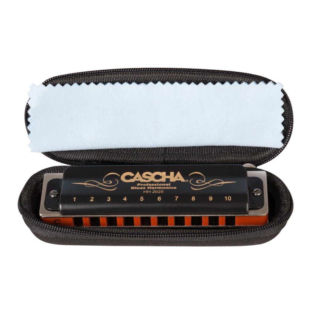 Diatonické harmoniky Cascha Professional Blues Series sú určené pre skúsených a začínajúcich hudobníkov a pre všetkých, ktorým by sa hodil lacnejší blues do vrecka. Harmoniky majú plastové telo medenej farby, mosadzné hlavy a matné čierne kryty. K dispozícii sú v ladeniach C, D, E, F, G, A a H/Bb.