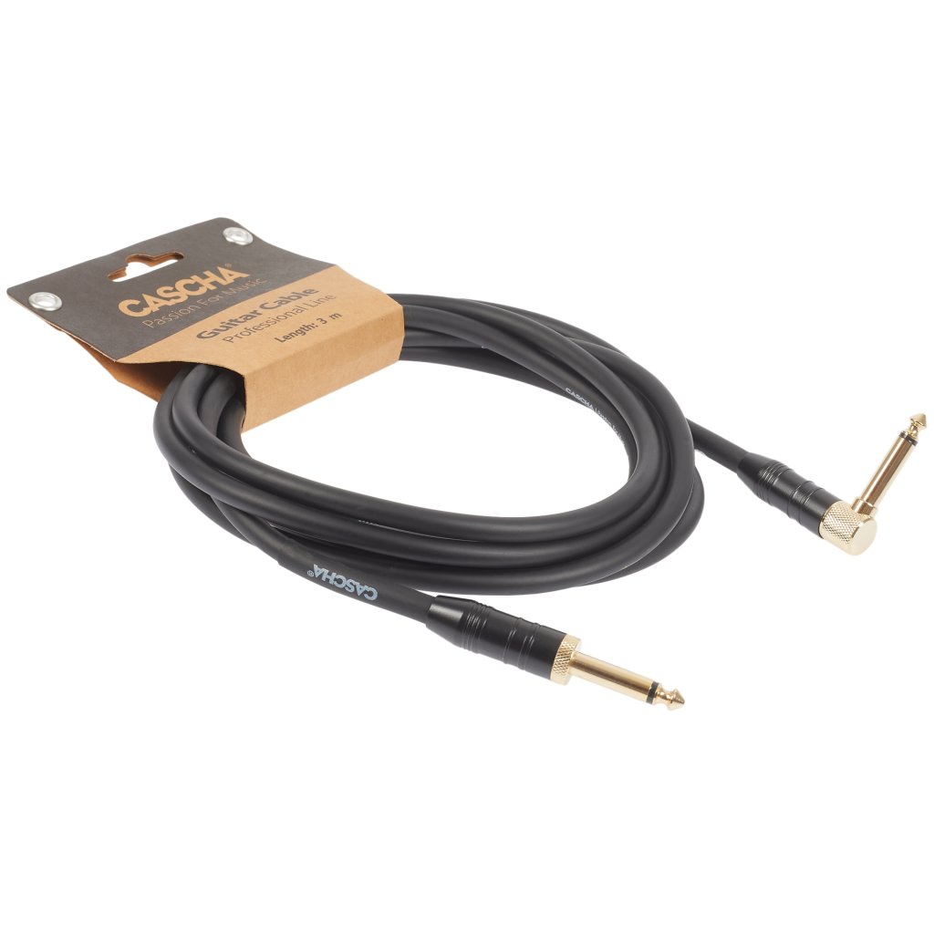CASCHA Professional Line Guitar Cable, Angled, Black, 3 m
