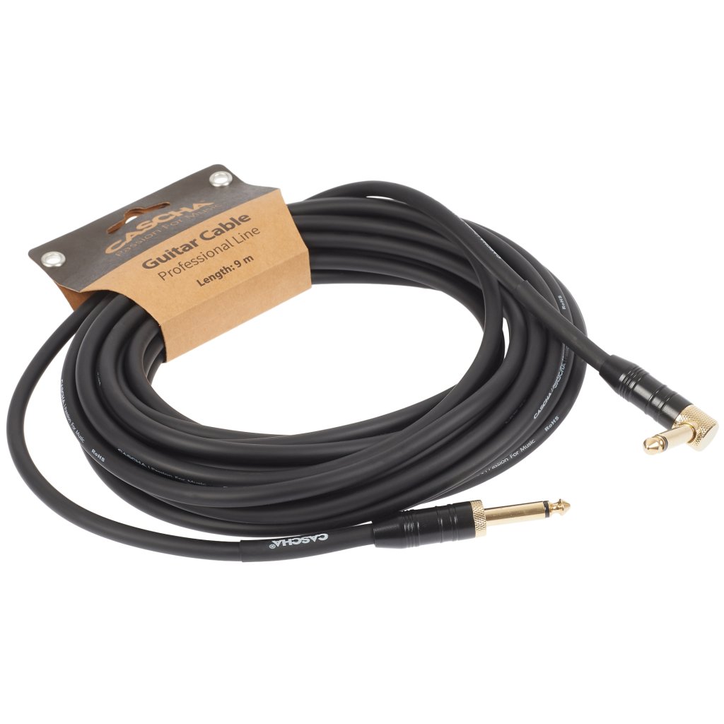 CASCHA Professional Line Guitar Cable, Angled, Black, 9 m
