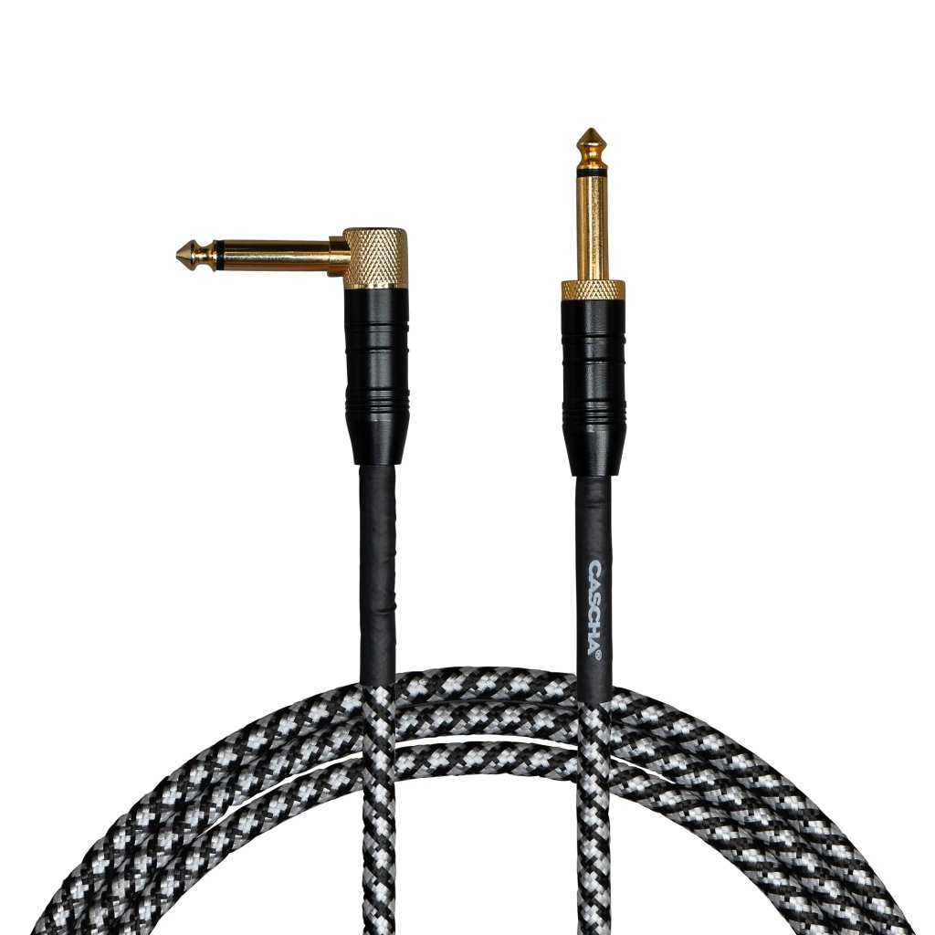 CASCHA Professional Line Guitar Cable, Angled, Tweed Black, 9 m