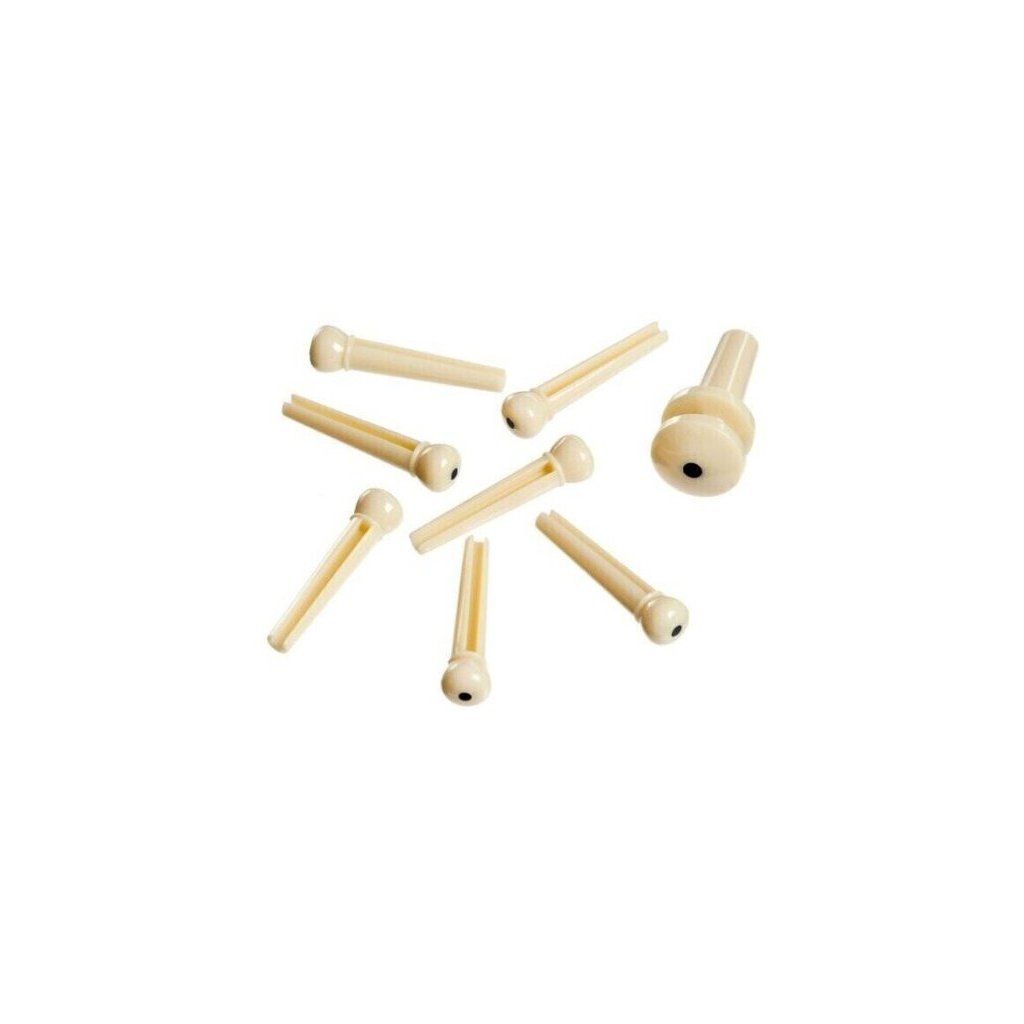 Sada šiestich náhradných kolíčkov do kobylky akustickej gitary. Súčasťou balenia je kľúč na ich odstraňovanie.