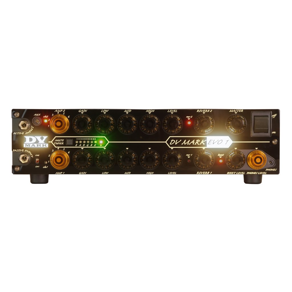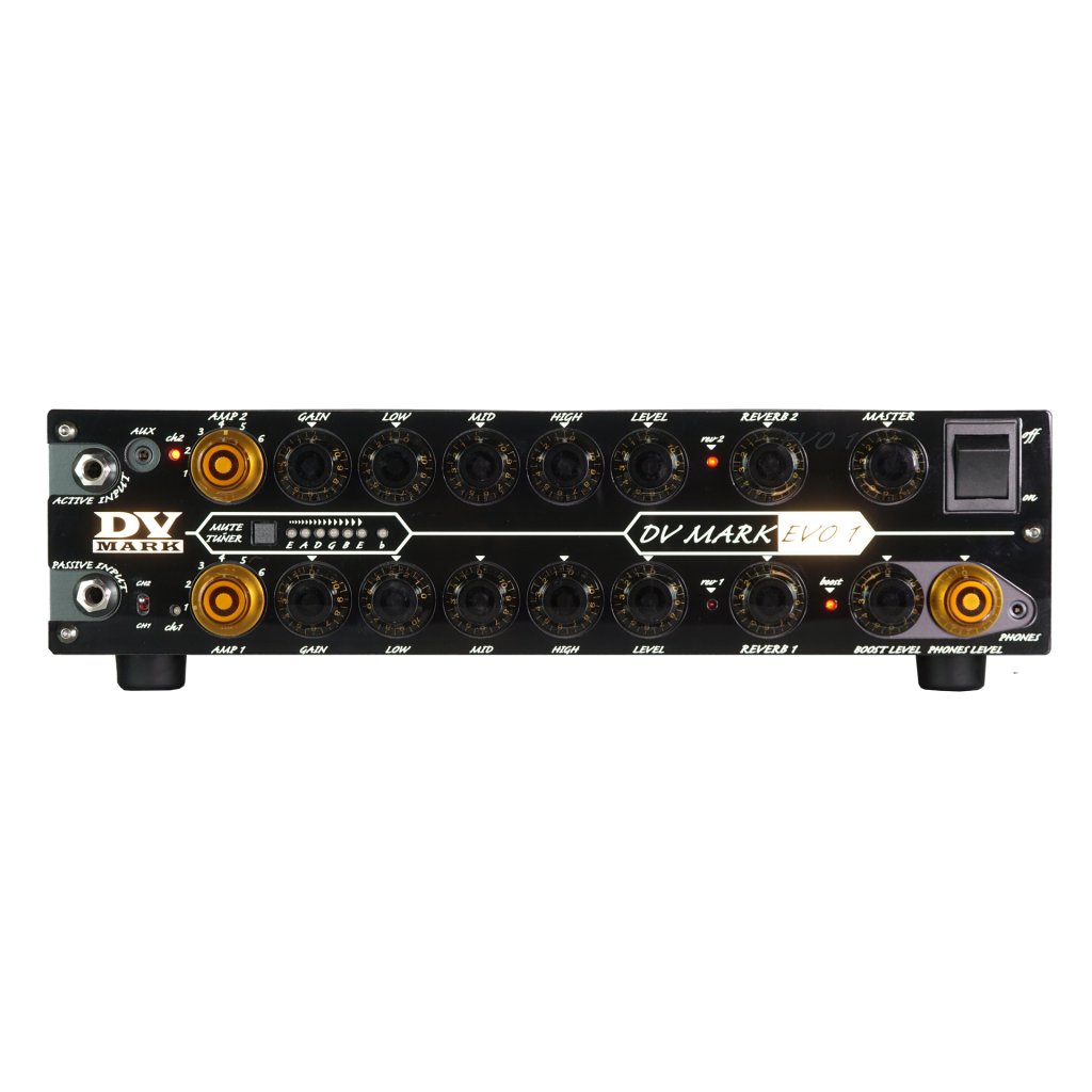 DV MARK EVO 1 má dva kanály s klasickým nastavením EQ, ovládáním reverbu u každého kanálu zvlášť, MIDI IN, vestavěnou ladičku, Aux In a výstup na sluchátka, efektovou smyčku, XLR linkový výstup, Boost a silný 250W MPT (Mark Proprietary Technology) koncový zesilovač s úžasně vřelým a neskutečně dynamickým tónem.