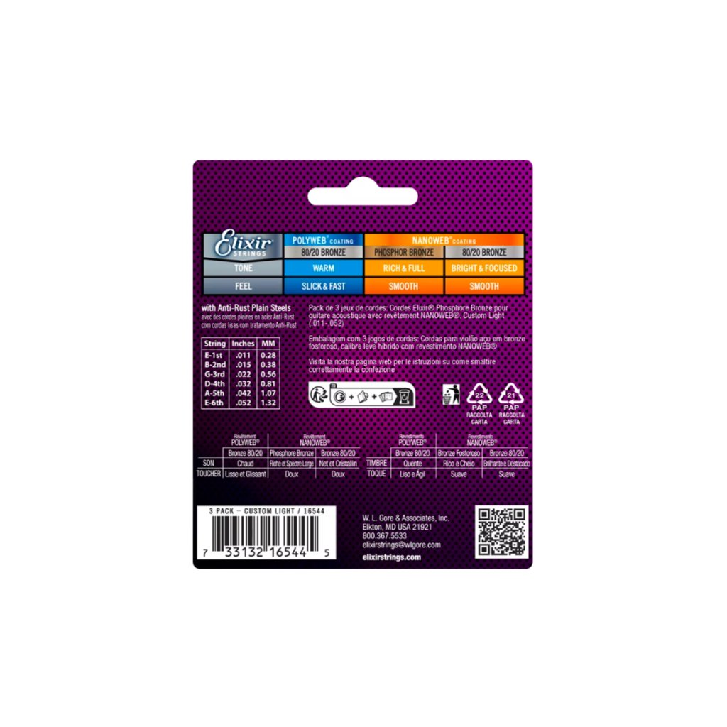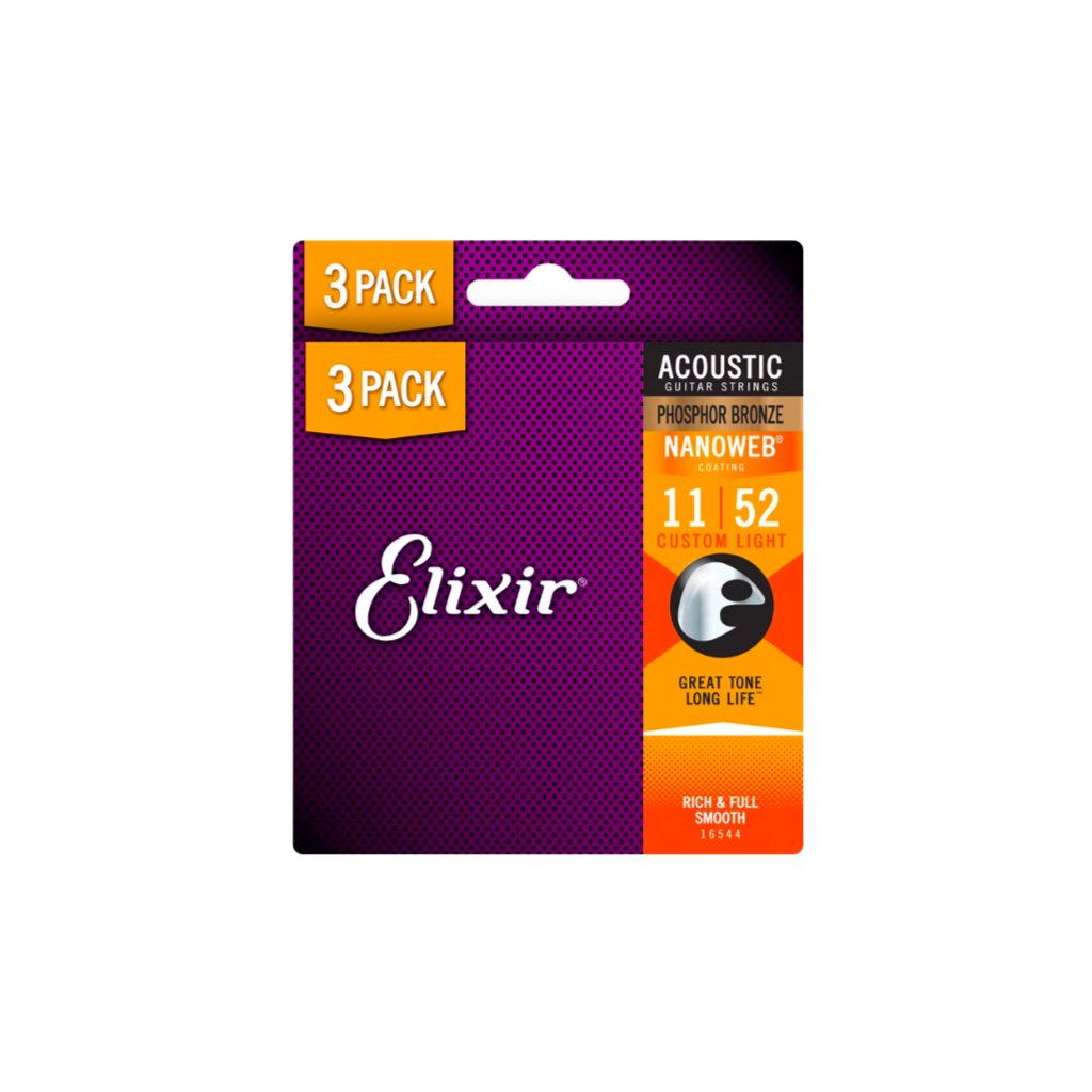 Elixir 16544 Nanoweb Phosphor Bronze 11-52 3-PACK