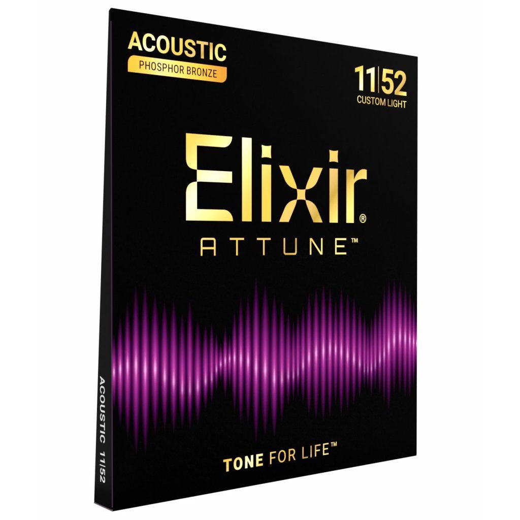 Sada Elixir Attune Medium (.011–.052) je určená pre gitaristov, ktorí chcú prirodzený pocit z nepotiahnutých strún a zároveň si zachovať mimoriadne dlhú životnosť tónu. Charakteristiky tejto sady poskytujú pevné napätie, lepšiu projekciu a dynamickú kontrolu, krištáľovo čisté výšky a kontrolované, muzikálne basy.
