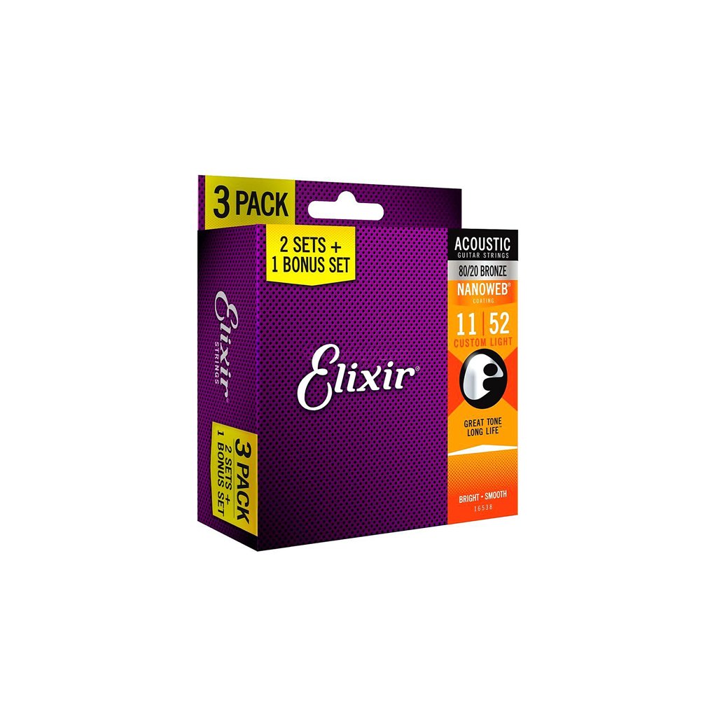 ELIXIR 16538 NANOWEB BRONZE 11-52 3 PACK