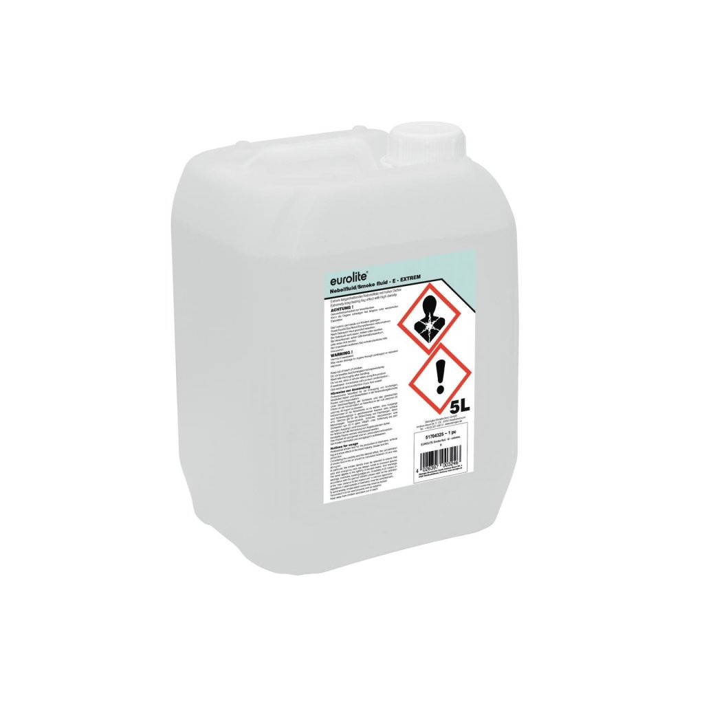 Veľmi kvalitná náplň do výrobníka hmly vhodná predovšetkým na zadymenie veľkých plôch ako napr. open air festivaly, veľké haly, ale je tiež vhodná ako verná simulácia hustého dymu pre hasičské zbory. Je vyrobená novým technologickým postupom, na vodnej báze bez obsahu Glycerínu, nie je toxická, zdravotne nezávadná, nie je horľavá. Biologicky rozložiteľná podľa normy OECD 301E / EHS 84/449 C3. Permanentná kontrola kvality v súlade s nariadením REACH. Vyrobené v Nemecku.
