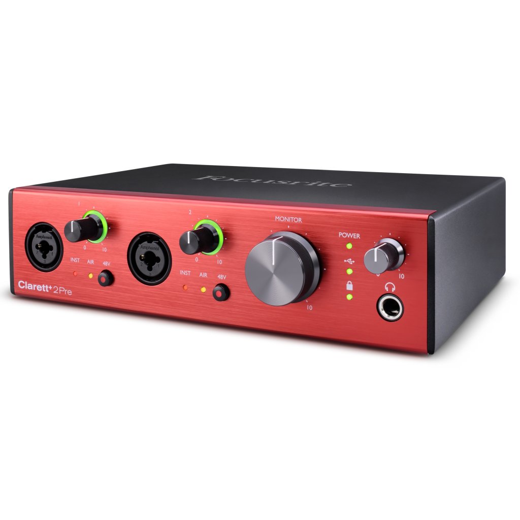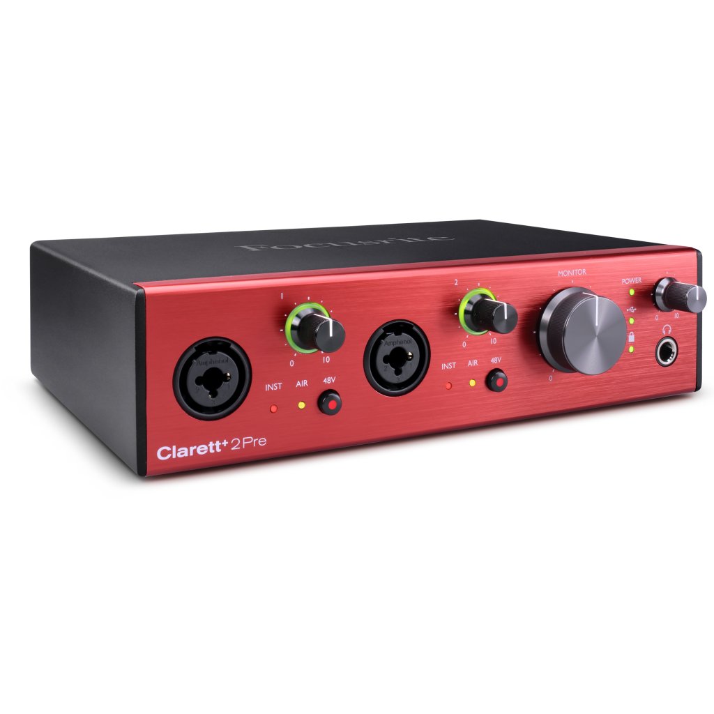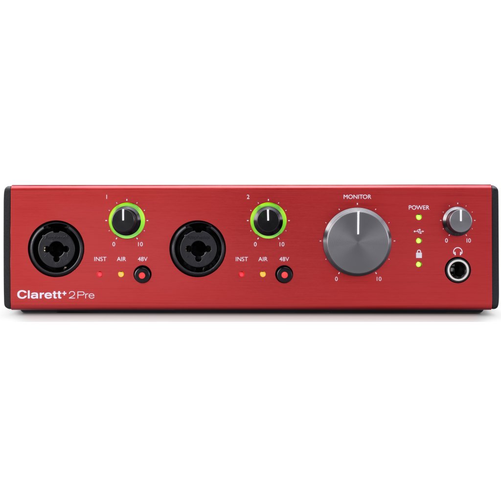 Nové a vylepšené zvukové rozhranie Clarett+ 2 Pre je nástupcom úspešného produktového radu Clarett, ktorý je vhodný pre domáce nahrávacie štúdiá, hudobných producentov a hudobníkov. Vďaka kompaktným rozmerom a možnosti napájania cez USB nájde uplatnenie aj na cestách. Má A/D a D/A prevodníky s maximálnym rozlíšením až 24 bitov/192 kHz a dynamický rozsah až 118 dB. Obvod AIR emuluje impedančné a rezonančné charakteristiky vstupných transformátorov legendárnych štúdiových predzosilňovačov série ISA110. Výsledkom je vzdušný a čistý zvuk s veľmi nízkym skreslením a minimálnym šumom, ktorý dosahuje iba -110 dB. Ďalšou zvláštnosťou sú potenciometre Gain s dokonale lineárnym priebehom zosilnenia. Ďalej je tu samozrejme 48V fantómové napájanie.