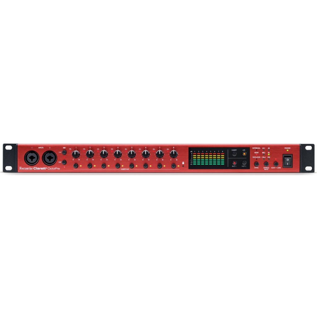 Focusrite Clarett Octopre je osemkanálový mikrofónový predzosilňovač a AD/DA prevodník s digitálnym rozhraním ADAT. Špičkové predzosilňovače série Clarett pracujú s rozlíšením 24 bit/192 kHz a ponúkajú dynamický rozsah až 118 dB. Technológia AIR, ktorá nahrávkam dodáva vzdušnosť a čistotu, napodobňuje impedančné a rezonančné charakteristiky legendárnych analógových štúdiových predzosilňovačov ISA od spoločnosti Focusrite. Dva analógové vstupy na prednom paneli sú schopné spracovať mikrofónové aj priame nástrojové signály (Hi-Z).