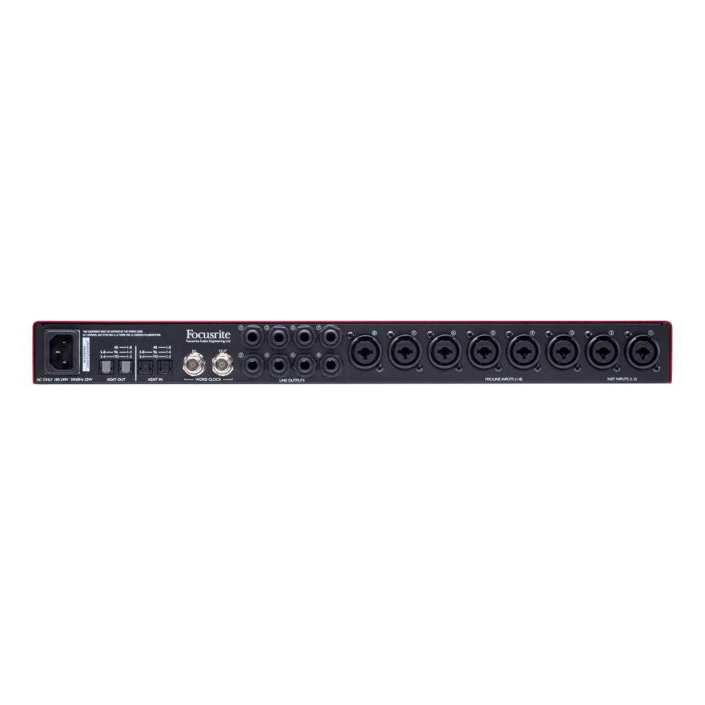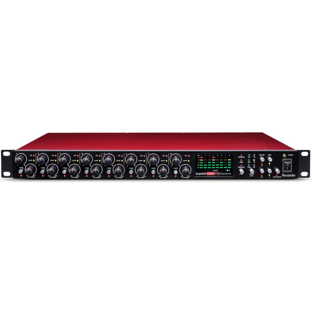 Scarlett OctoPre je vybavený ôsmimi analógovými vstupmi s kombinovanými konektormi XLR/TRS. Každý vstupný kanál je vybavený ovládaním hlasitosti a prepínačom útlmu (-8 dB). Pre kanály 1 a 2 má používateľ možnosť zvoliť vstupnú citlivosť (LINE/INST). Signál je možné smerovať do ôsmich digitálnych (optické rozhranie ADAT) alebo ôsmich analógových (TRS) výstupov. Sila signálu je indikovaná farebnými LED diódami na priehľadnom paneli. Komunikáciu s inými štúdiovými prístrojmi zabezpečuje synchronizačný terminál BNC pre WordClock. Súčasťou balenia je softvérový balík obsahujúci Red Plug-in Suite (Focusrite), Time and Tone Bundle (Softube), Plug-in Collective (Focusrite).