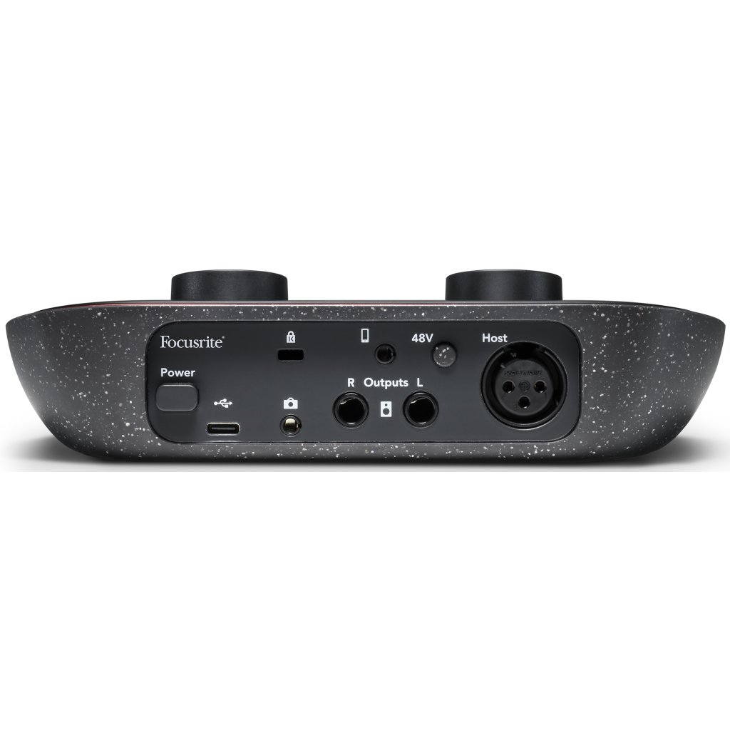 Vocaster One obsahuje dva robustné gombíky na nastavenie hlasitosti mikrofónového vstupu a slúchadlového alebo linkového výstupu, tlačidlo Mute, tri predvoľby, výstup pre DSLR fotoaparát, konektor pre mobilné zariadenie, USB port na pripojenie k PC a samozrejme mikrofónový vstup s fantómovým napájaním. Súčasťou balenia je potom USB kábel a šesťmesačná licencia na softvér Hindenburg LITE, aCast, SquadCast alebo Ampify Studio.
