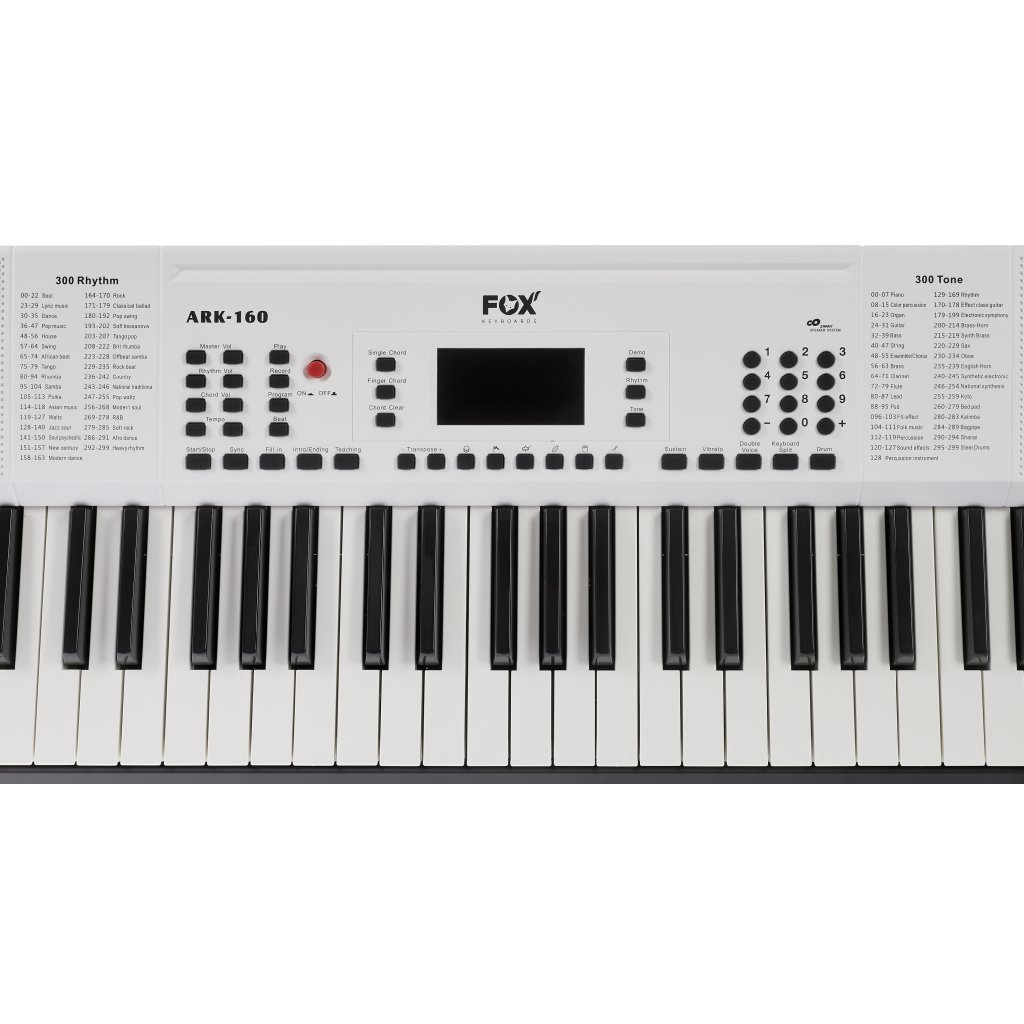 FOX 160 ponúka 61 klávesov štandardnej veľkosti, 128 zvukov a 128 automatických sprievodov. K dispozícii sú aj pokročilé funkcie ako Split (rozdelenie klaviatúry na hranie dvoch nástrojov súčasne), Dual Voice (vrstvenie zvukov) a nastavenia Sustaine (reverb) a Vibrato. Klaviatúru možno tiež transponovať, čo ocenia začiatočníci aj pokročilí hráči. K dispozícii je aj možnosť hrať akordy jedným prstom, funkcia Nahrávanie na nahrávanie experimentov alebo metronóm a výukový systém. Ku klávesom je možné pripojiť mikrofón.