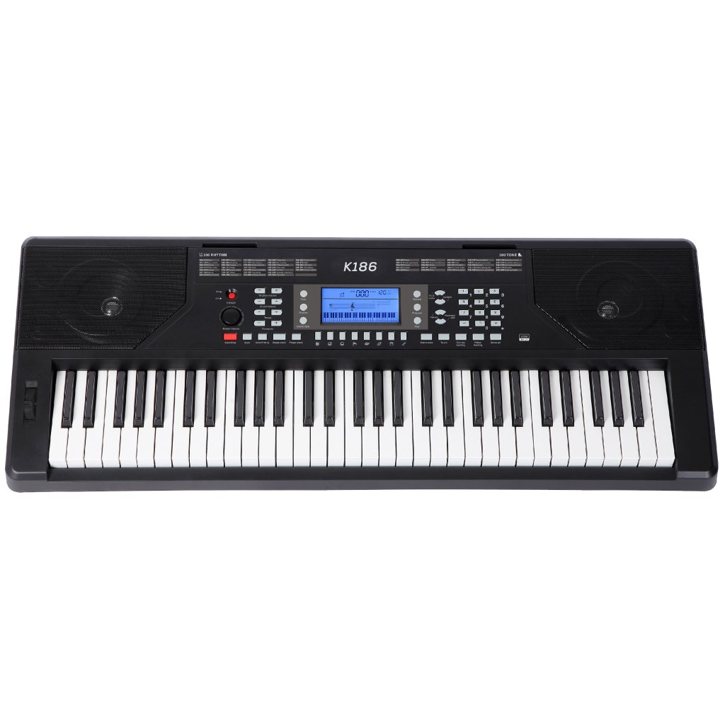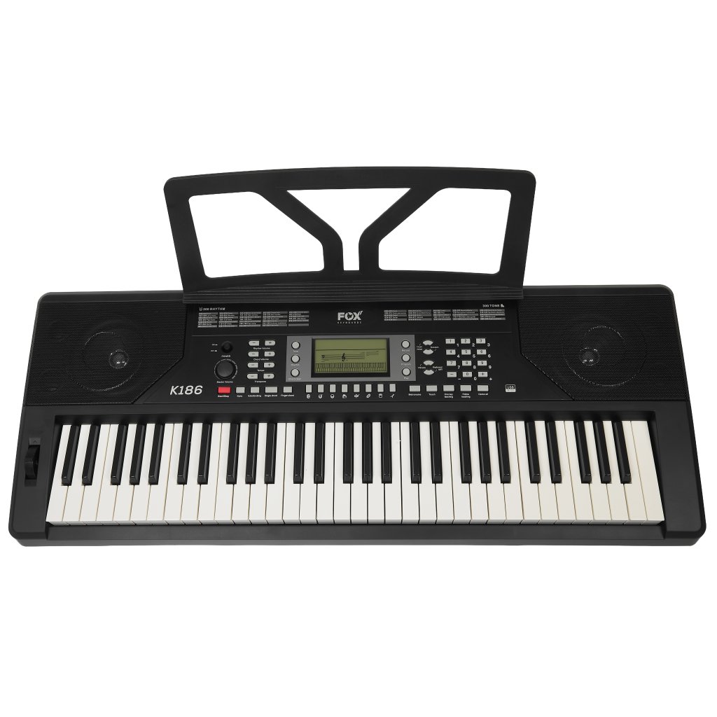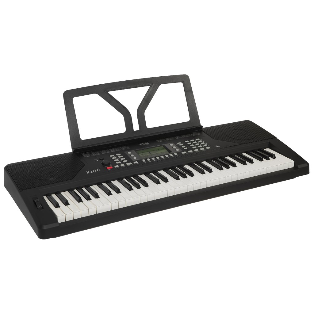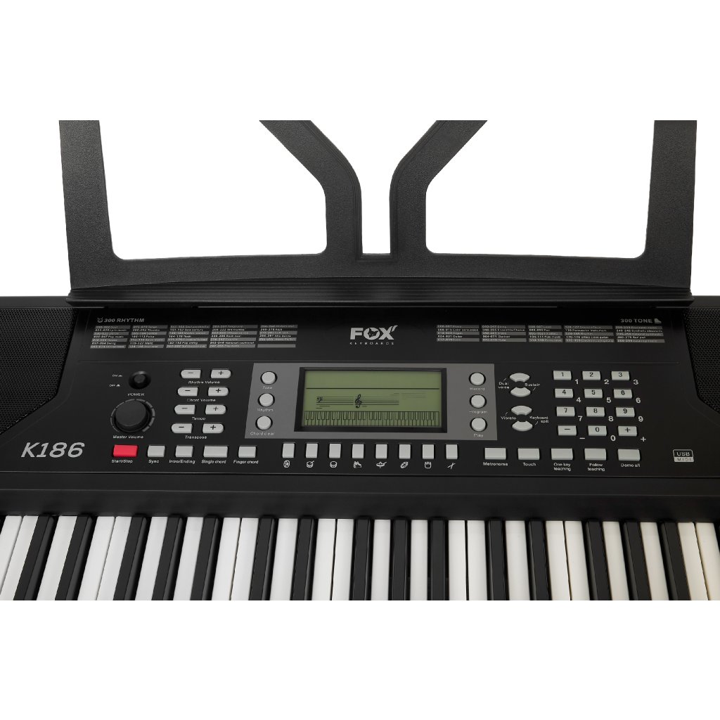 FOX K168 ponúka 61 klávesov štandardnej veľkosti s dynamikou, osem tlačidiel pre bicie nástroje, prehľadný LCD displej, 300 zvukov, 300 automatických sprievodov a 40 demo skladieb. K dispozícii sú aj pokročilé funkcie ako Split (rozdelenie klaviatúry na hranie dvoch nástrojov súčasne), Dual Voice (vrstvenie zvukov) a nastavenia Sustaine (reverb) a Vibrato. Klaviatúru možno tiež transponovať, čo ocenia začiatočníci aj pokročilí hráči. Samozrejme, môžete hrať akordy jedným prstom, pomocou funkcie Record nahrávať svoje pokusy alebo používať metronóm. Ku klávesom môžete pripojiť mikrofón alebo externé zariadenie s obľúbenými nahrávkami a jamovať s nimi. Vďaka výstupu MIDI Out možno klávesy používať aj ako ovládač pre hudobný softvér.