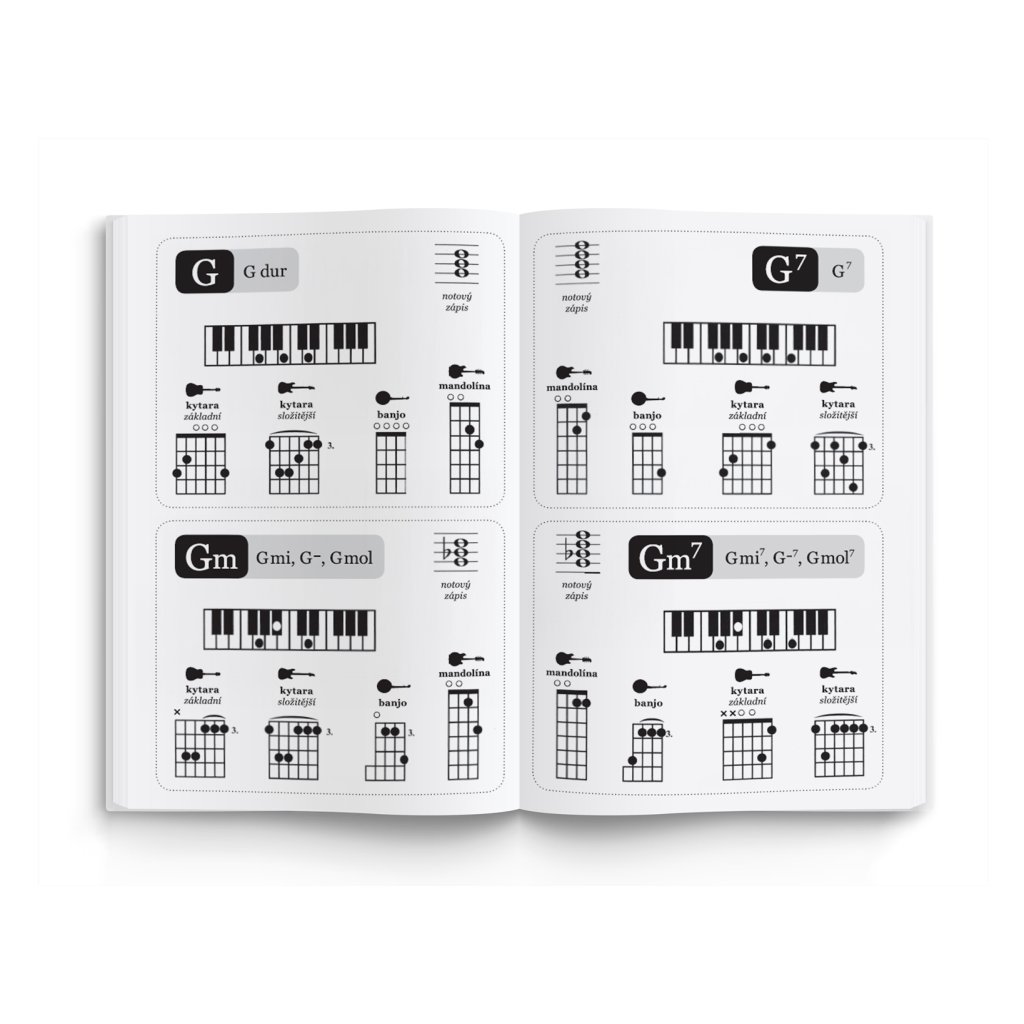 Najobľúbenejšia knižka akordov a základných rytmov ideálneho formátu pre všetkých začínajúcich gitaristov a nielen pre nich. V publikácii nájdete akordy aj na banjo a mandolínu, ale aj základný akord pre klávesy.