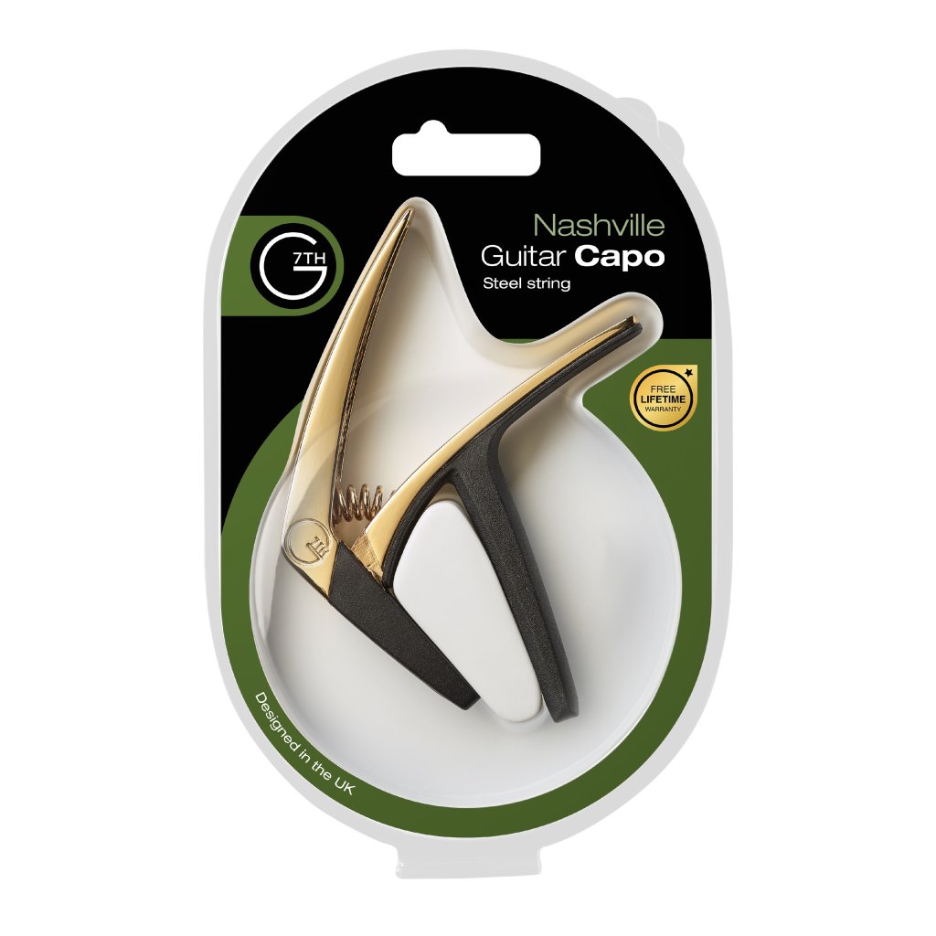 Nashville od G7th je praktický ľahký pickguard vybavený pružinovým mechanizmom pre jednoduché upnutie/odopnutie na krk gitary. Prenáša napätie rovnomerne na všetky struny, vďaka čomu ich udržiava naladené. Časti prichádzajúce do kontaktu s krkom gitary sú vybavené silikónovou pogumovanou vložkou, ktorá zabraňuje poškodeniu.