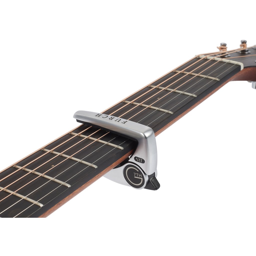 Když se spojí dvě špičkové značky, může vzniknou jedině prvotřídní produkt a u tohoto kapodastru to platí každopádně. Společnost G7th přichází s kapodastrem, který v sobě spojuje nejmodernější technologie a zároveň vzdává hold světově renomované značce Furch, která vznikla v roce 1981 v jedné z mnoha garáží socialistického Československa a z původně malého nelegálního projektu se postupně se vypracovala až na výrobce kytar světového formátu. Kapodastr je založen na modelu G7th Performance 3, který nabízí bytelnou konstrukci z kvalitních materiálů, snadné ovládání i jednou rukou a stoprocentní funkčnost v každé situaci. Oproti starším verzím se liší v prvé řadě využitím technologie ART neboli Adaptive Radius Technology, která byla doteď dostupná pouze u kapodastrů řady Heritage. Díky ní se snadno přizpůsobí nástrojům s libovolnou tloušťkou a profilem krku, čímž zajišťuje optimální přítlak, skvělou stabilitu ladění a čistý tón bez jakýchkoliv nežádoucích ruchů. Kapodastr zároveň využívá jednoduchý systém nasazení a utažení, což zajišťuje rychlou a plynulou manipulaci. V místech, kde se dotýká kytary, se nachází měkká gumová výstelka, která je maximálně šetrná ke dřevu i laku vašeho nástroje. Tento model využijete na jakékoliv akustické či elektrické kytary s šesti strunami, nejlépe však bude ladit s kytarami značky Furch.