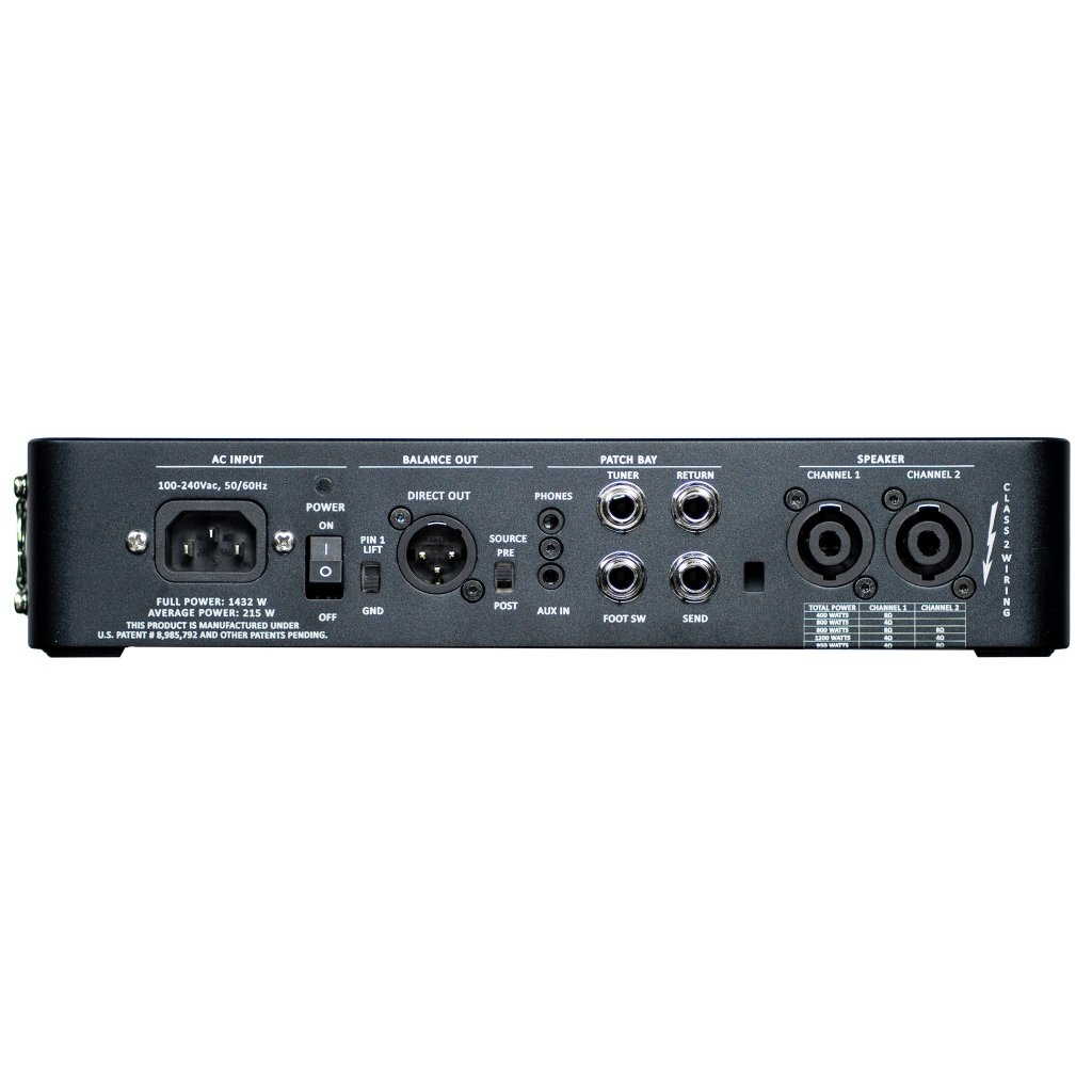 Spolu so zosilňovačom triedy D ponúka Legacy 1200 maximálny výkon až 1200 W. Predný ovládací panel pozostáva z ovládača hlasitosti a skreslenia, prepínača overdrive alebo štvorpásmového ekvalizéra na úpravu zvukového signálu. K dispozícii sú aj prepínače zvukového filtra Bump/Contour/Presence pre čo najflexibilnejšie využitie zosilňovača. Zadný panel potom ponúka trojpolohový prepínač impedancie, dvojpolohový prepínač zdroja Pre/Post, konektory Speakon na pripojenie reproduktorov, efektovú slučku, nožný spínač a vstup pre ladičku alebo vstup pre slúchadlá či hudobné zariadenie. Samozrejmosťou je XLR výstup pre DI Box s prepínačom Lift/Ground unground. Zosilňovač je vybavený dvoma robustnými rukoväťami na pohodlnú prepravu a jednoduchú manipuláciu na pódiu.