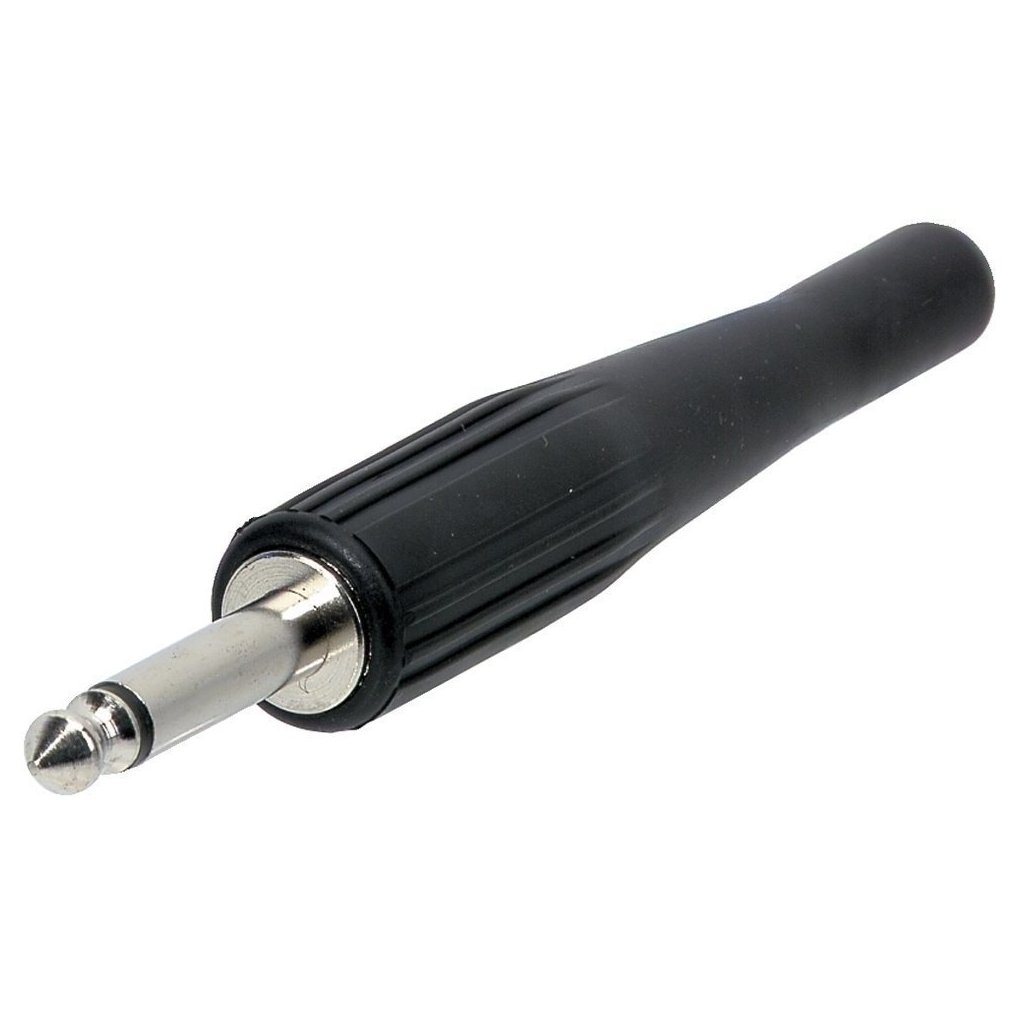 JACK 6,3 mm mono konektor s dlhým pogumovaným hrdlem.