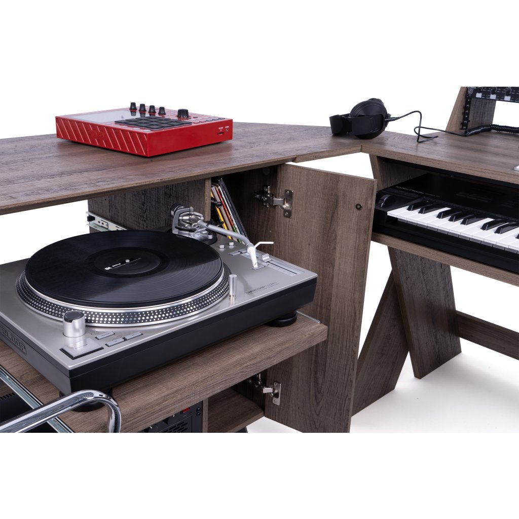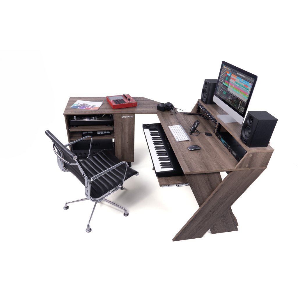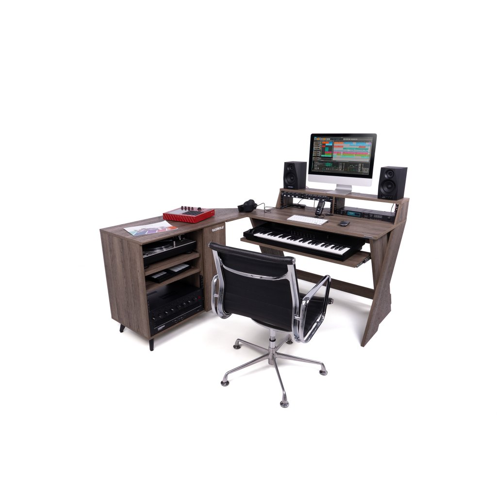 Glorious Modular Side Rack je rozširujúci kus štúdiovej pracovnej stanice radu Sound Desk a Workbench. Táto špeciálne tvarovaná prídavná stolná doska je navrhnutá tak, aby optimalizovala funkčnosť štúdia alebo pracovnej plochy a vytvorila premyslený, ucelený koncept. Jednoducho vám pomôže prepojiť napr. hlavný stôl a bočný regál. Pripojenie stolovej dosky je úplne flexibilné, inštalácia je jednoduchá a možno na ľavej alebo pravej strane.