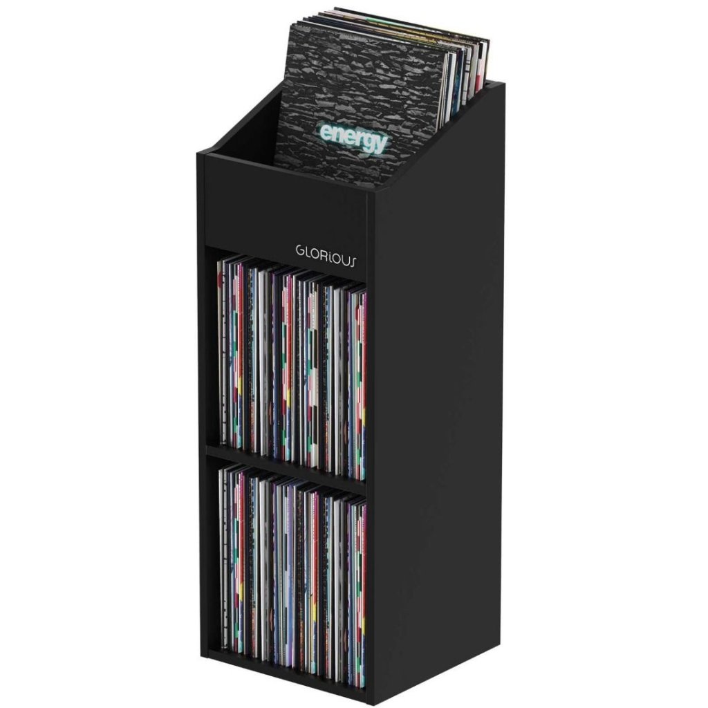 Record Rack 330 od spoločnosti Glorious je praktický trojposchodový regál na 12-palcové vinyly (LP platne), ktorý pojme až 330 vinylových platní. Horná otvorená schránka so skosenými bočnými stranami umožňuje jednoduchý a rýchly prístup k záznamom. Vďaka tomu je stojan na platne ideálny pre hudobné obchody a DJ-ov, keď potrebujete vystaviť platne a rýchlo v nich listovať, ako aj na usporiadanie domácej zbierky vinylov.