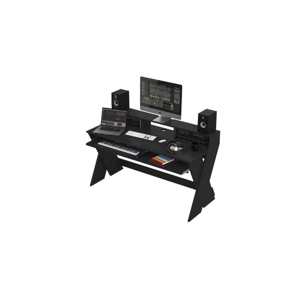 Štýlový drevený zvukový stôl Sound Desk Pro je vhodný do nahrávacích štúdií a interiérov, kde hudobní producenti, skladatelia a dídžeji potrebujú mať všetko po ruke. Trojúrovňový stôl obsahuje výsuvnú plochu na klávesy, klávesnicu a iné vybavenie. Hlavný stôl má veľkú plochu, na ktorú môžete ľahko umiestniť notebook, slúchadlá a hrnček na kávu. Stojan na monitor a reproduktory vám potom umožní skvelé monitorovanie nahrávok a maximálnu viditeľnosť jednotlivých skladieb. Okrem toho podstavec obsahuje dve zásuvky pre zariadenia namontované v 19" stojane. Sound Desk Pro je k dispozícii v troch farebných variantoch, takže sa skvele hodí do moderného nahrávacieho štúdia.