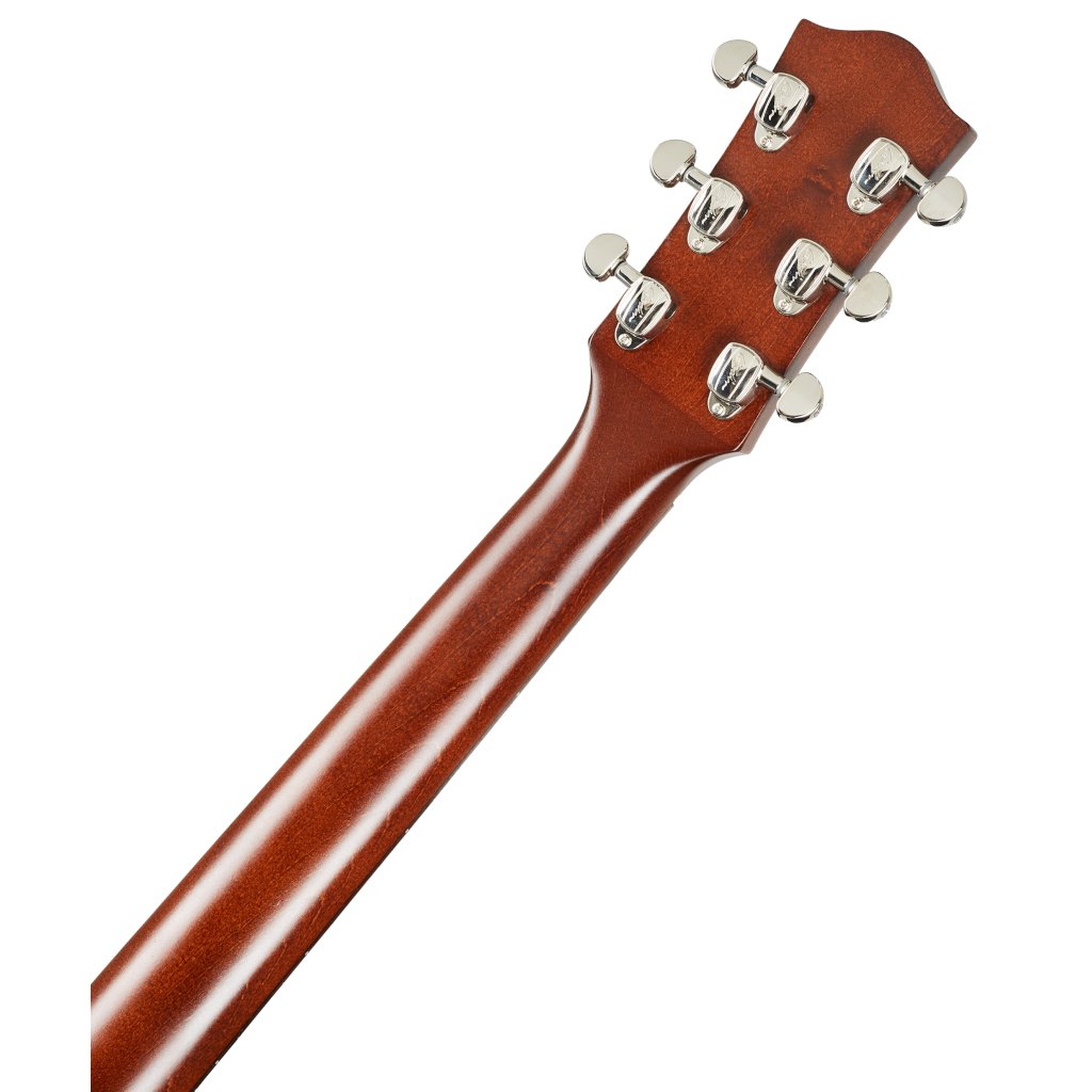 GODIN 5TH AVENUE KINGPIN II HB Cognac Burst 5th Avenue sú archtop gitary, ktoré vás prenesú do 50. rokov minulého storočia, keď tieto nástroje vládli hudbe. Kombinujú však klasický zvuk s komfortom hrania, ktorý môžu ponúknuť len nástroje vyrobené najmodernejšími technikami. A ako je u gitár Godin zvykom, samozrejmosťou je precízne spracovanie, použitie kvalitných materiálov a skvelý zvuk. Telo a krk Celé telo tohto nástroja - predná strana, luby a zadná strana - je vyrobené z kanadskej divokej čerešne. Lepený krk je vyrobený zo striebornolistého javora. Hmatník s rádiusom 16 palcov je vyrobený z palisandrového dreva a s menzúrou 630 milimetrov na ňom nájdete 21 pražcov. Snímače a elektronika Gitara je vybavená dvoma snímačmi, konkrétne humbuckermi Godin. Zvuk je potom možné ovládať pomocou potenciometrov hlasitosti a tónovej clony, snímače sa prepínajú štandardným 3-polohovým prepínačom. Hardvér Použitý hardvér je pochrómovaný. Na hlavici nájdete kvalitné ladiace mechaniky, na druhej strane vedú struny cez výškovo nastaviteľný strunník k strunníku. Nultý pražec so šírkou 43,7 milimetra je vyrobený z materiálu TusQ spoločnosti Graphtech, ktorý simuluje kosť. Godin 5th Avenue ponúka nevídané možnosti moderného nástroja s duchom histórie.