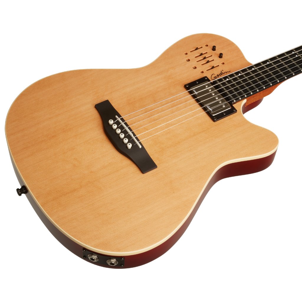 Godin tu použil duálny systém snímania zvuku. V prvom rade ide o piezo snímač Underdrive, ktorý je doplnený špeciálne vyvinutým predzosilňovačom s ovládaním hlasitosti a 3-pásmovým ekvalizérom. Druhým spôsobom je humbucker pri krku, označený ako Godin GHN1, ktorý má tiež ovládanie hlasitosti a 2-pásmový ekvalizér. Používajú sa aj dva výstupy, jeden pre čisto elektrický signál a druhý pre akustický mix.