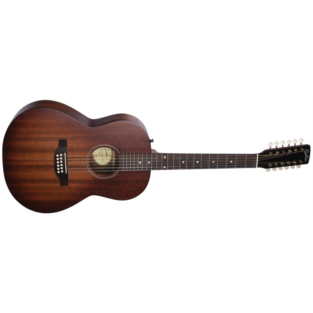 Dvanáctistrunná elektroakustická kytara Mahogany Folk 12 Rustic Burst kanadské značky Godin nabízí kompaktnější tělo velikosti “Folk” a krásně plný prostorový zvuk dvanáctistrunné akustické kytary, který je nedílnou součástí řady slavných nahrávek. Tělo z masivu mahagonu poskytuje nástroji vřelý zvuk. Kresbu mahagonu podtrhuje pololesklý finiš Rustic Burst. Ke krku ze stříbrolistého javoru je přilepen palisandrový hmatník osazený jednadvaceti pražci. Orientaci na hmatníku usnadňují polohové tečky. Zvuk je snímán pomocí elektroniky Fishman Sonitone s ovladači hlasitosti a tónové clony decentně umístěnými v ozvučném otvoru kytary. Struny jsou uchyceny ve firemních otevřených ladicích mechanikách a palisandrové kobylce. Kytara je dodávána v obalu (gig bag).