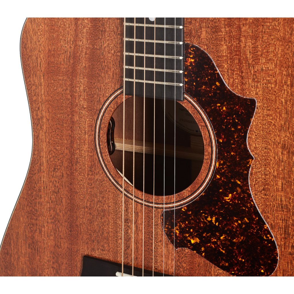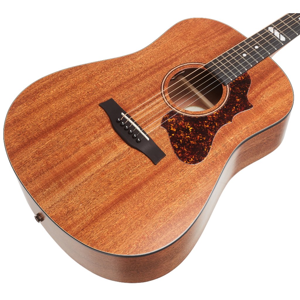 Struny sú osadené firemnými otvorenými ladiacimi mechanikami s prevodovým pomerom 16:1 a ebenovým hmatníkom. Štýlový dizajn nástroja podčiarkuje lemovanie tela, jednoduchá rozeta, logo spoločnosti na hlavici a pickguard z imitácie korytnačiny.
